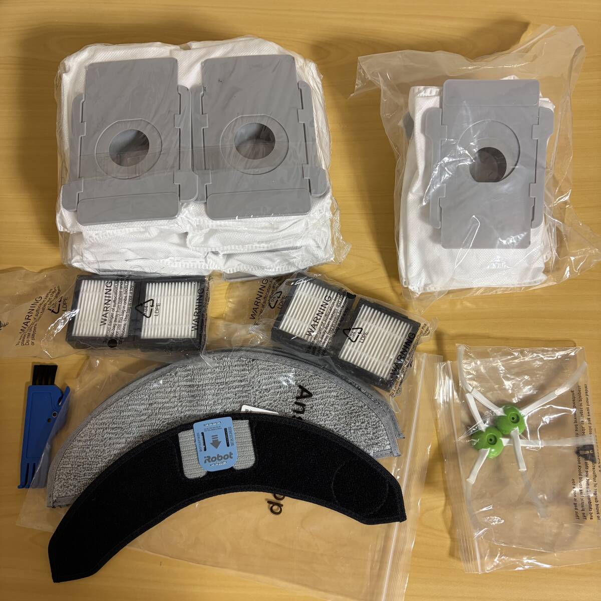 内容:交換用紙パックx8個、交換用エッジクリーニングブラシx1個、交換用ダストカットフィルターx4個、マイクロファイバーモップパッドx4個(モップパッド1個は純正品、他は互換品となります)