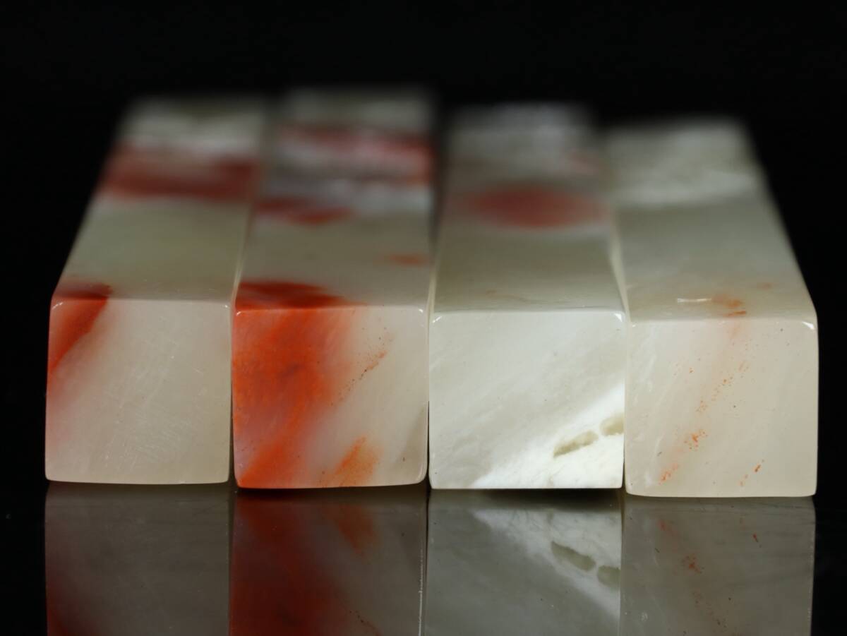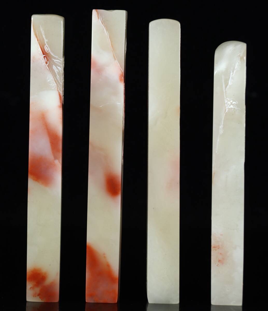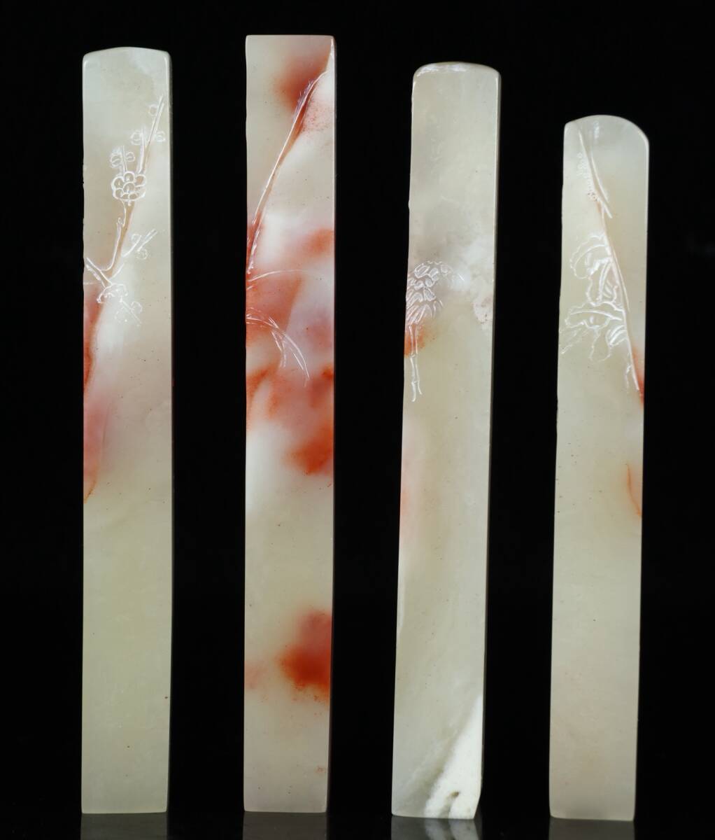 旧蔵 清 寿山石 彫刻 梅蘭竹菊套章 天然石 手彫 篆刻 古印材 極細工 中国古玩 骨董品 古美味 210