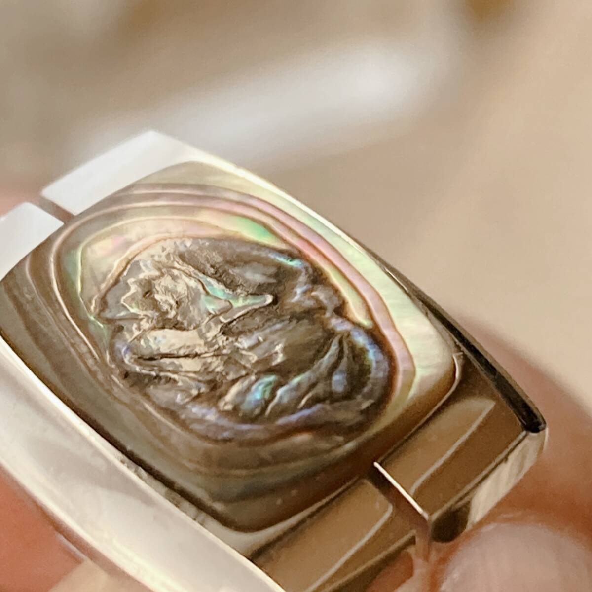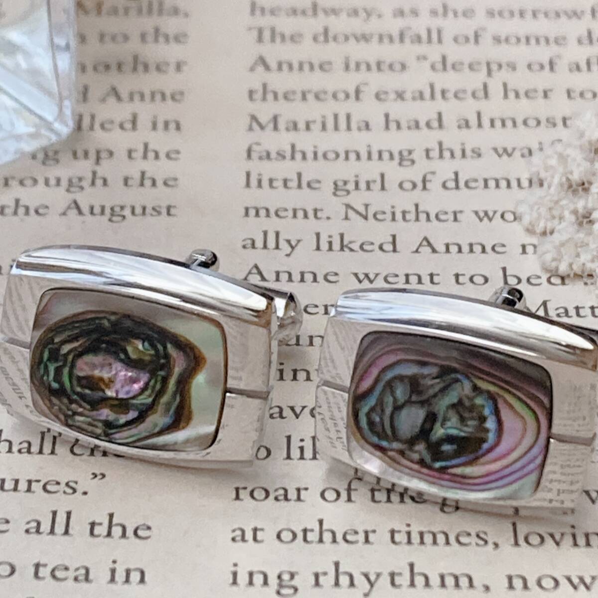 カフスボタン シェル シルバートーン☆Vintage jewelry accessoriesF0352
