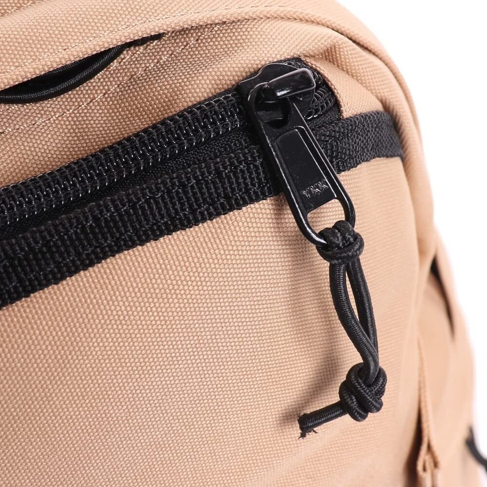 中身に合わせてバッグの収納を抑られるバンジーコード、スケボーデッキを挟めるバックル仕様など、タウンユースを意識したつくりです。