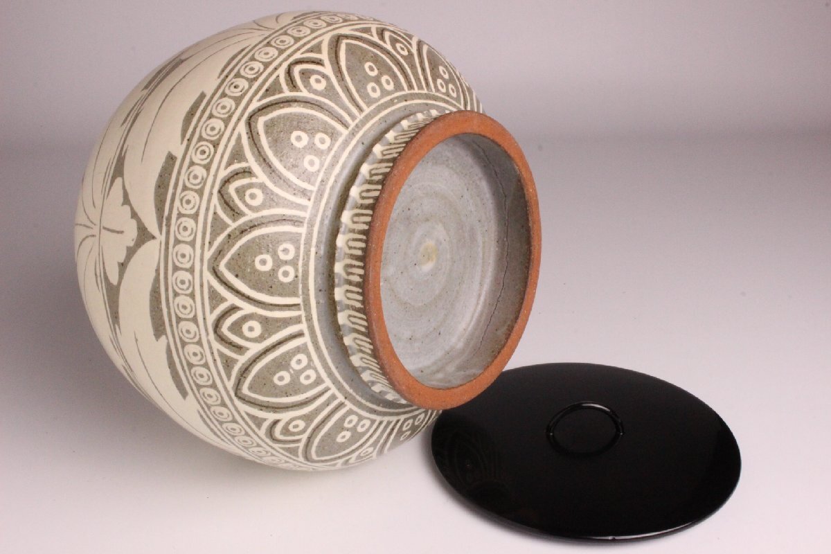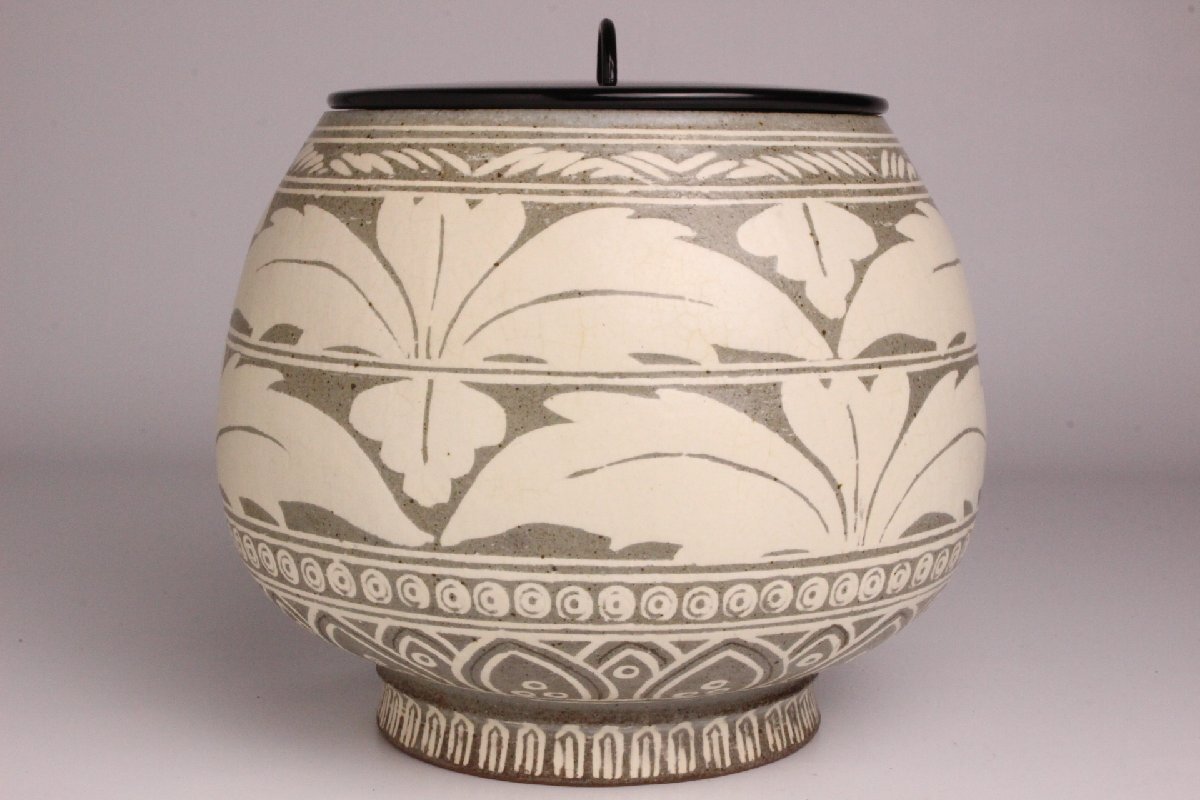 趙誠主 作 掻き落し 花葉文 水指「共箱」