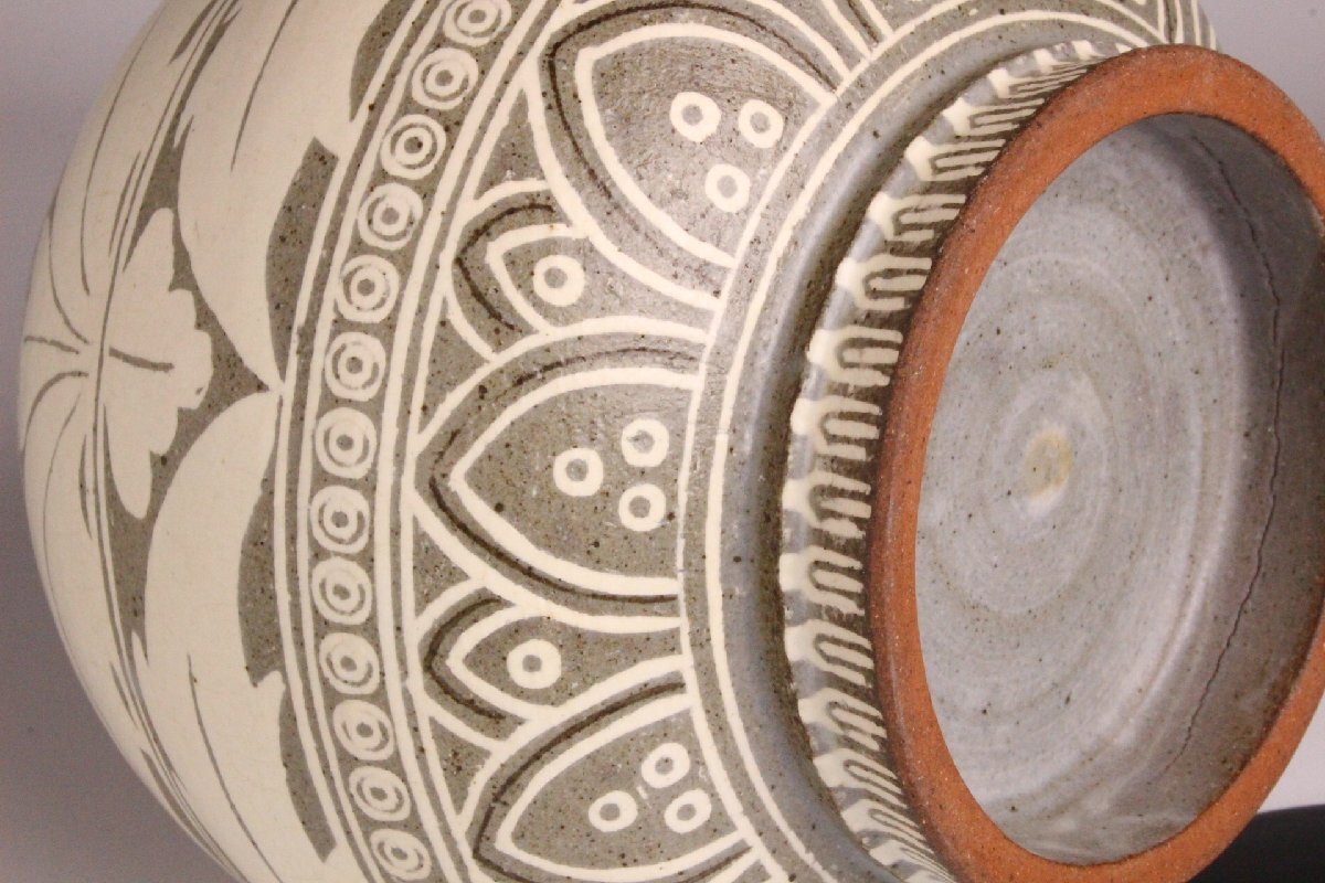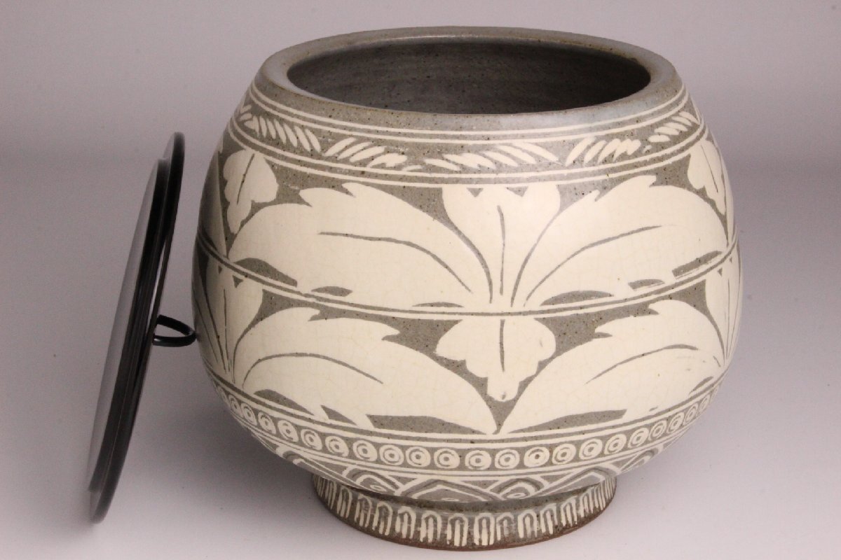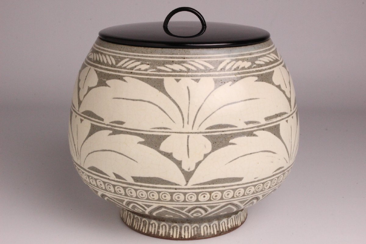 趙誠主 作 掻き落し 花葉文 水指「共箱」