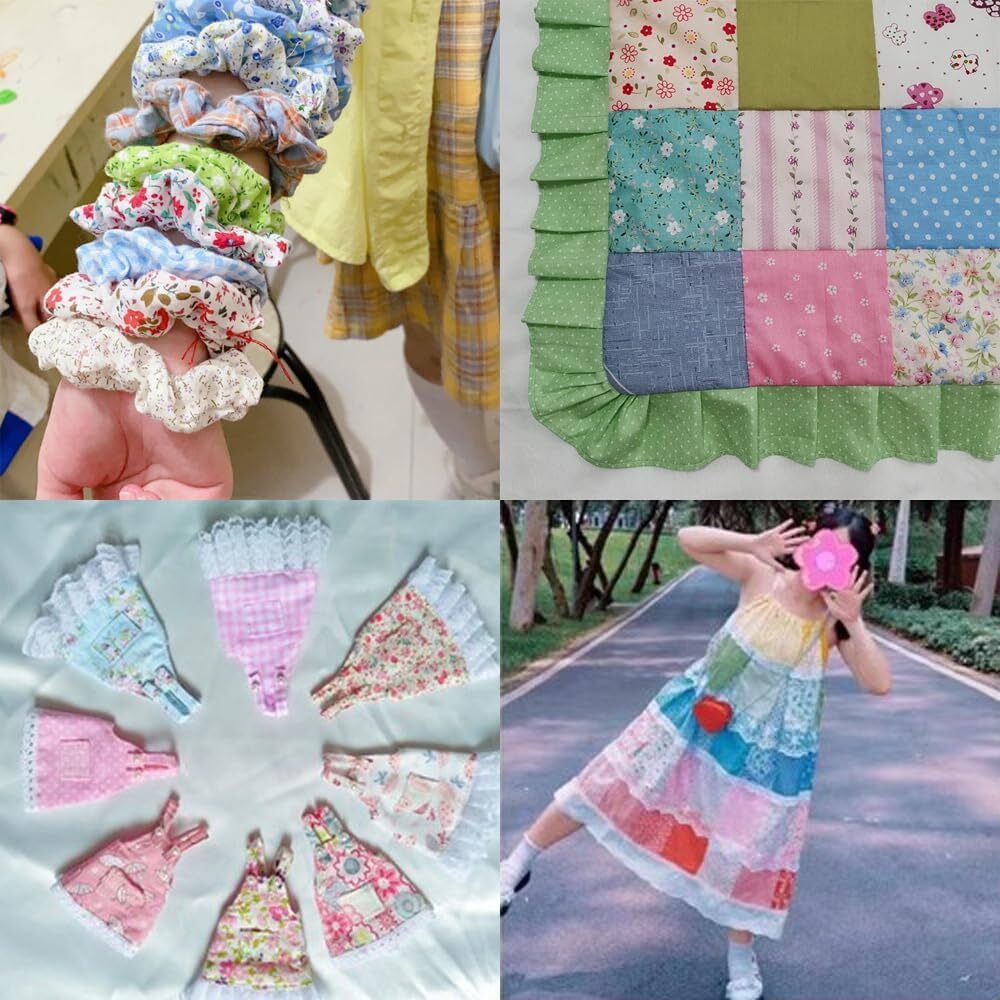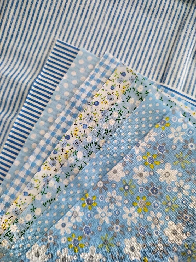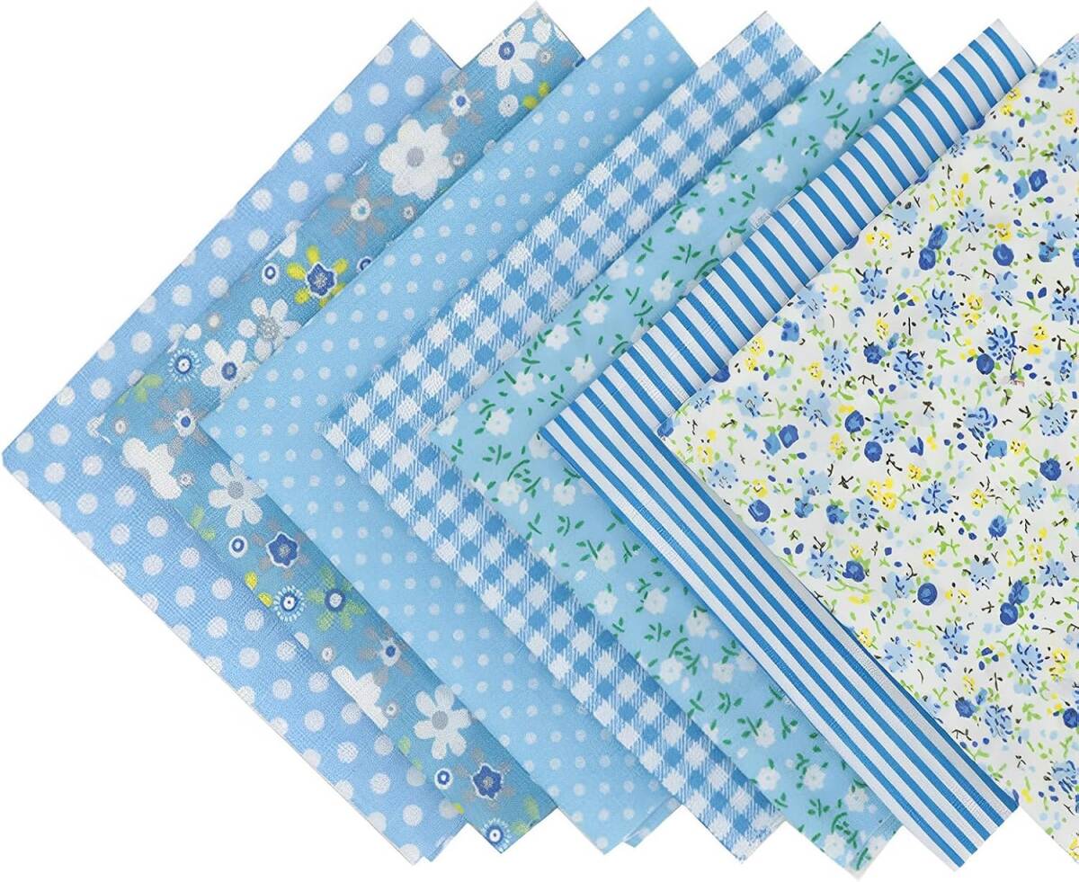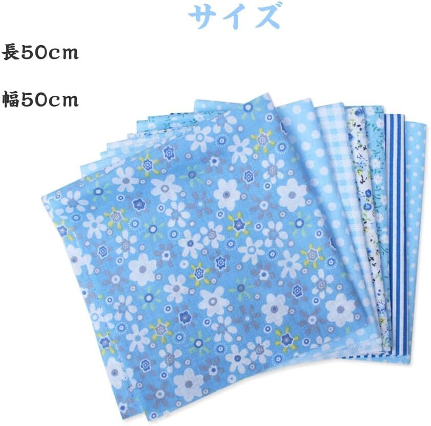 ブルー色 サムコス 7枚図案セット 生地 布 50×50cm 花柄 パッチワーク布 カットクロス 綿 DIY手芸用 ハンドメイド 小花 はぎれ