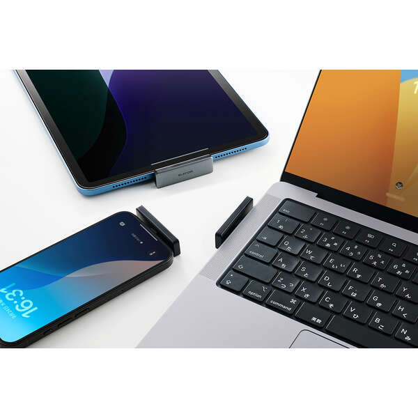 | ●接続時の出っ張りを最小限に抑えた厚さ10mmのスリム設計で、 データ移行中などのスマホ操作にも邪魔になりません | |