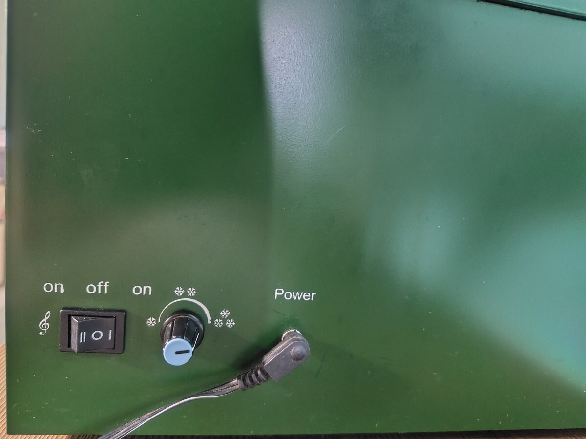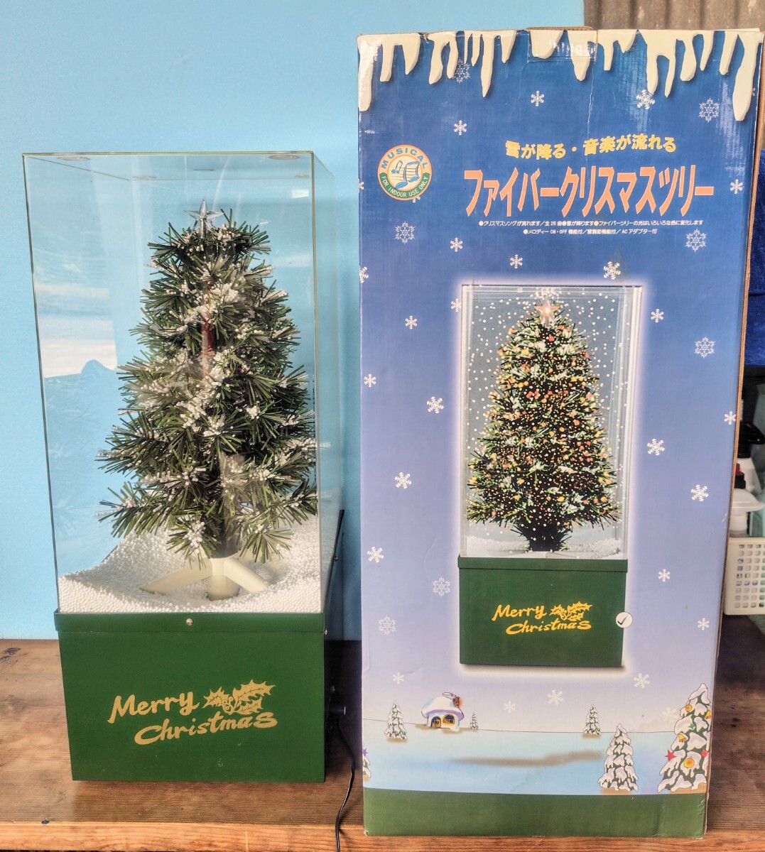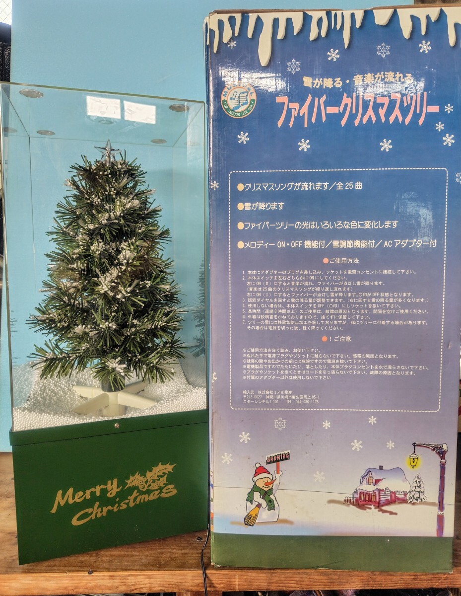 調整可能です)、グラスファイバーでツリーが光ります、クリスマスソングが聞けます、中古品ですが、作動確認済みです、全体の高さ65cm、ツリー部分の高さ45cm、幅27cm、電源はAC100Vアダプター付、傷、擦れ、汚れあり。