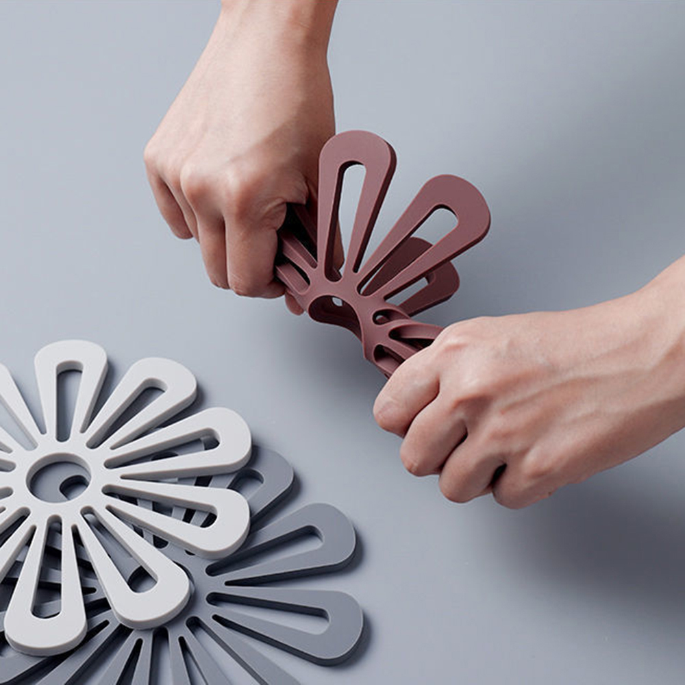【花型鍋敷き】カラーは商品画像の1枚目をご確認ください。【おしゃれなキッチン雑貨を探しているあなたへ】シンプルカラーでグラタンやシチューなど食卓でもおしゃれに演出!【かわいいデザイン、高い耐熱性】かわいい耐熱性の高い鍋敷き、滑りづらい素材なので鍋敷きだけでなく花瓶置きや鉢置きなど複数で使用すれば統一感を持たせておしゃれに演出出来ます。【水洗い可能】水洗いが可能な素材のため汚れがついてもすぐに洗い流せ衛生面も安心です。2枚セット、4枚セットもございます。複数購入でお買い得となっておりますのでぜひご覧くださいませ。【商品情報】サイズ:16.8cm×16.8cm材 質:TPR