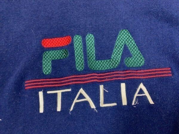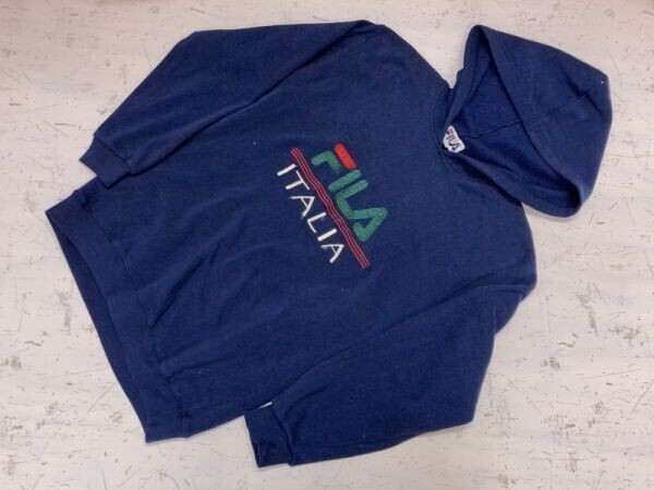 フィラ FILA オールド レトロ 90s 古着 スポーツウェア ストリート プルオーバー スウェットパーカー メンズ 刺繍 L 紺