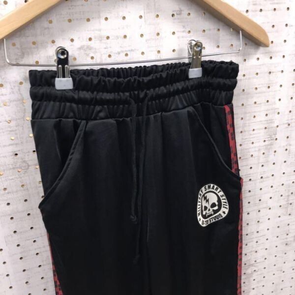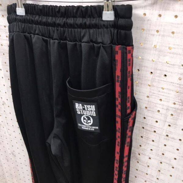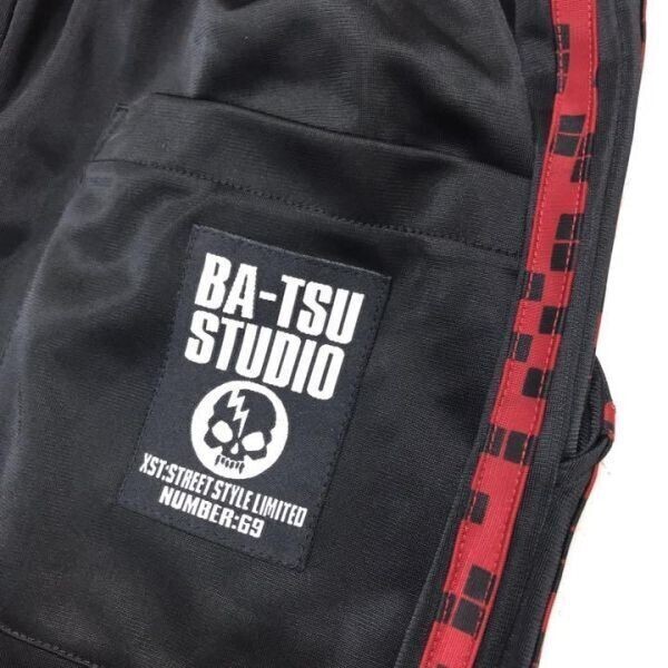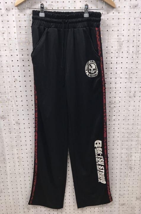 バツ スタジオ BA-TSU STUDIO キッズコア Y2K サイドライン スクエアドット ドクロ ジャージ イージー トラックパンツ ボトムス キッズ 黒