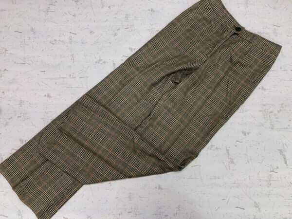 オールド 昭和 国産レトロ ブーツカット ワイド スラックス グレンチェック パンツ ボトムス レディース 日本製 ウール100% キャメル系 です。