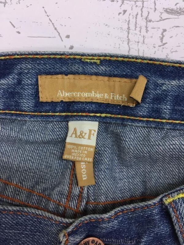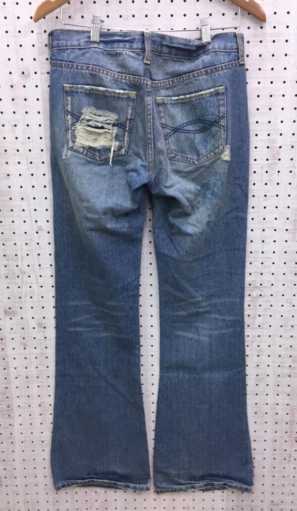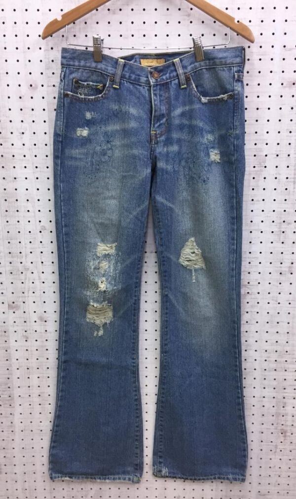 アバクロンビー&フィッチ Abercrombie&Fitch ブーツカット フレア ダメージ加工 フラワードローイング デニム ジーンズ レディース 6R 青