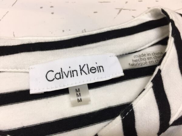 カルバンクライン Calvin Klein キレカジ ボーダー バンドカラー 七分袖カットソー レディース レーヨン95% ポリウレタン5% M 白黒です。