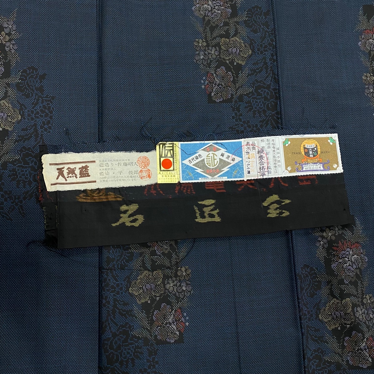 | 大島紬 美品 名品 証紙 純泥染 天然藍 短冊 草花 紺色 袷 身丈156 裄丈61 S 正絹 【中古】 |