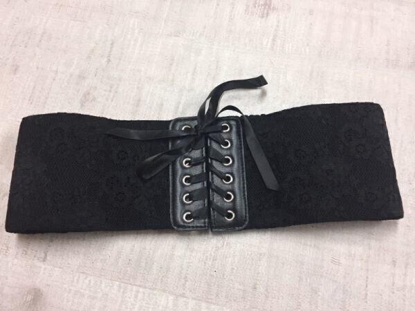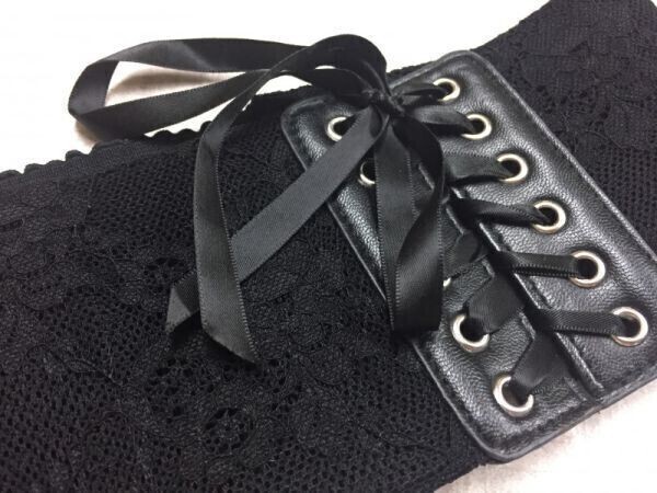 ゴシック ゴス ロリータ フェアリーグランジ Y2K 00s 衣装 リボン付き レース × 合皮 コルセット ベルト レディース 黒 です。