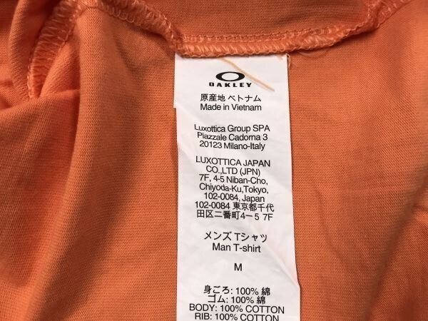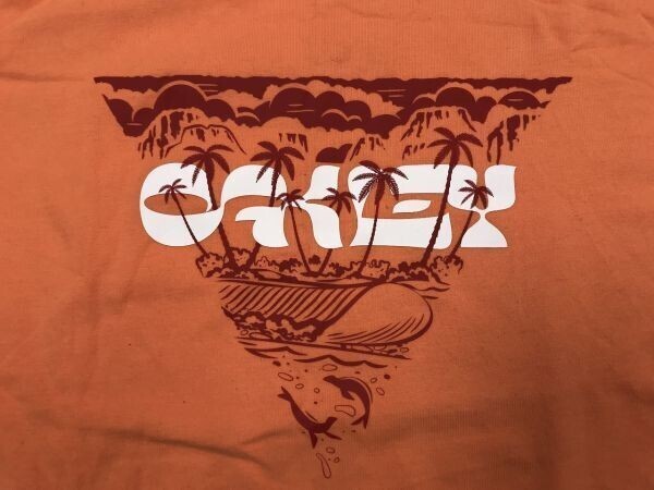 オークリー OAKLEY スポーツ ストリート 古着 ロゴプリント 半袖Tシャツ メンズ コットン100% L オレンジ です。