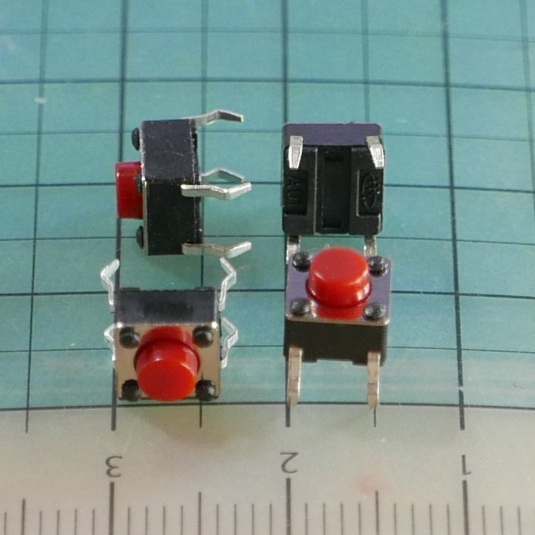 タクトスイッチ 6mm角 高さ5mm(実装面から) 赤ボタン ジャンパ有4本足 トッププッシュ移動量約0.25mm 1セット4個