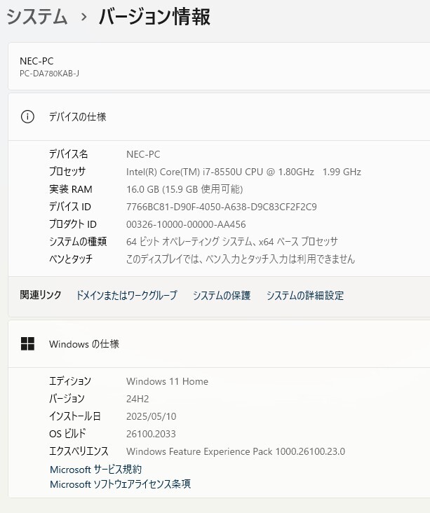型番: NEC LAVIE PC-DA780KAB |