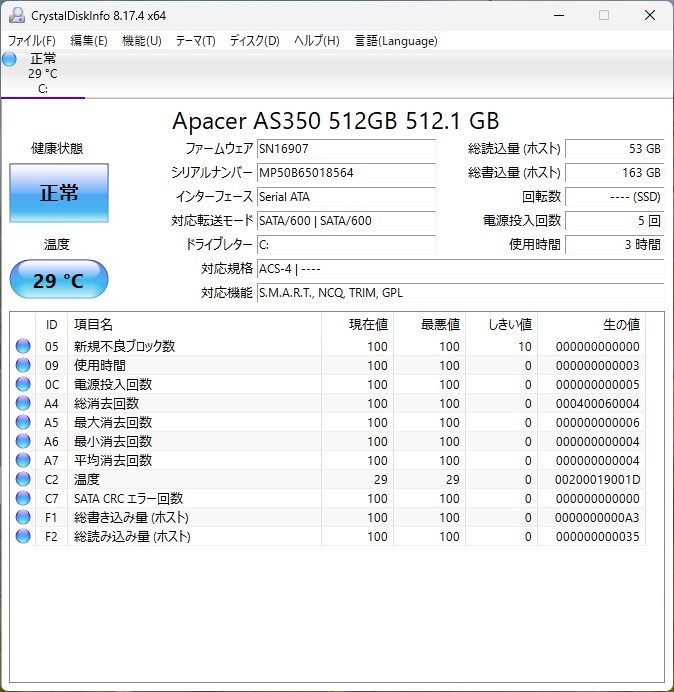 ストレージ: 新品SSD 512GB 爆速動作 |