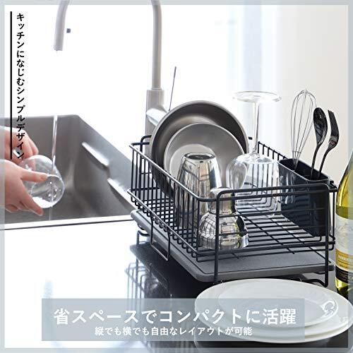 パール金属 鉄 食器 水切り かご バスケット スリム ダークグレー 珪藻土トレー付 AZ-5510