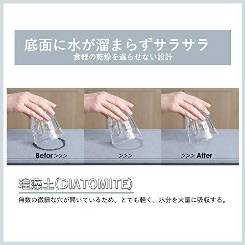 素材・材質:本体/鉄(エポキシ樹脂塗装)、トレー/珪藻土、水切りポケット/ポリプロピレン(耐熱温度100度)、すべり止め/シリコーンゴム