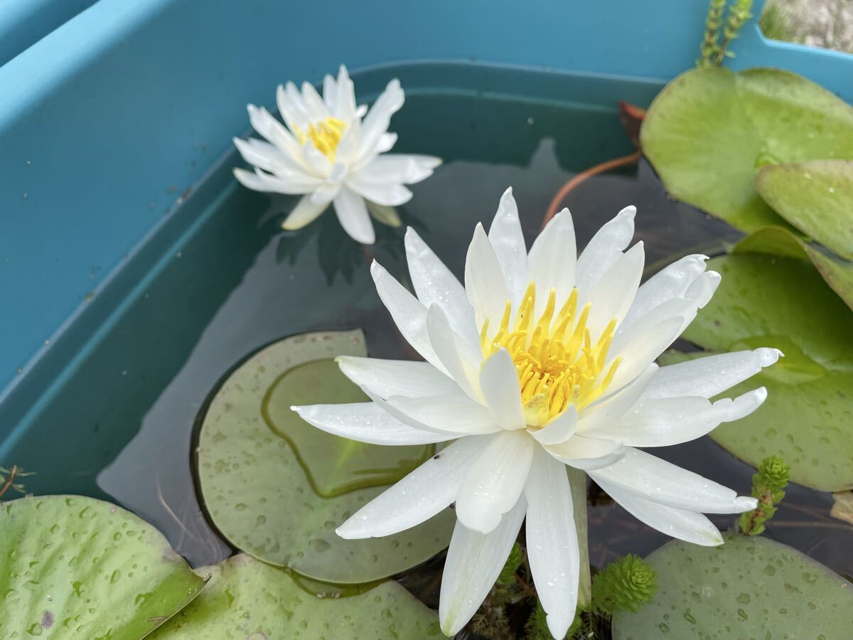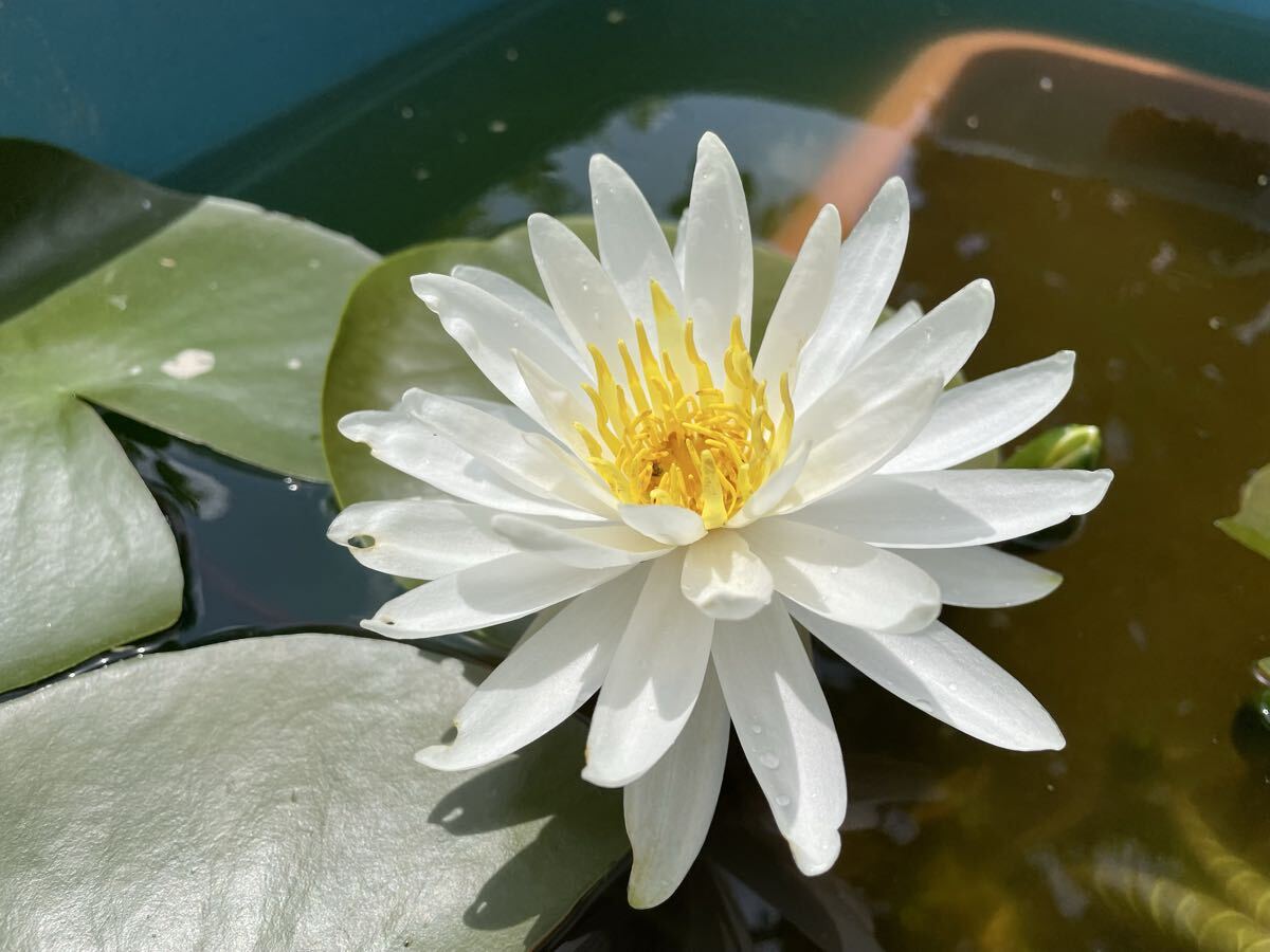 カロニアナ・二ウェラは純白の睡蓮でシャープな花弁が特徴的な綺麗な睡蓮です。