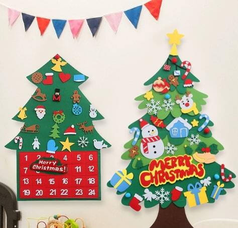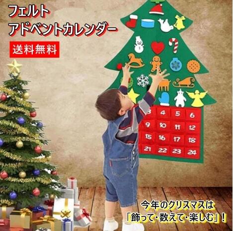 壁掛けタイプのフェルトツリーに、12月1日からクリスマスまで24日間、毎日ひとつずつオーナメントを飾っていくことで、ワクワクした気分を楽しめます♪