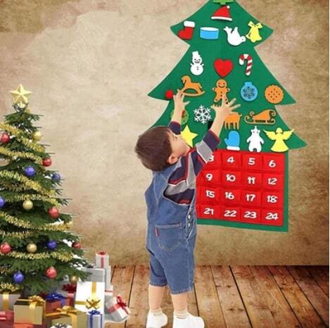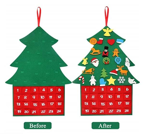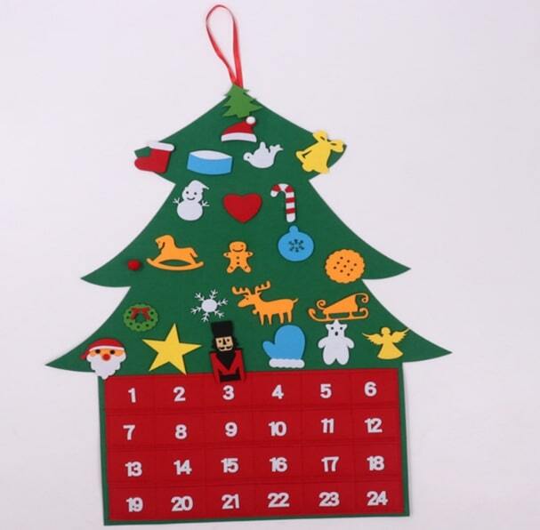厚手のフェルト素材で作られた、可愛いクリスマスツリー型アドベントカレンダーで、毎日をちょっと特別に☆