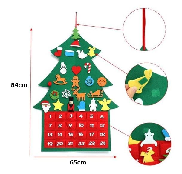ツリー本体にはポケットが付いており、サンタクロース・雪の結晶・星などの可愛いフェルトオーナメントやお菓子などを収納できます。