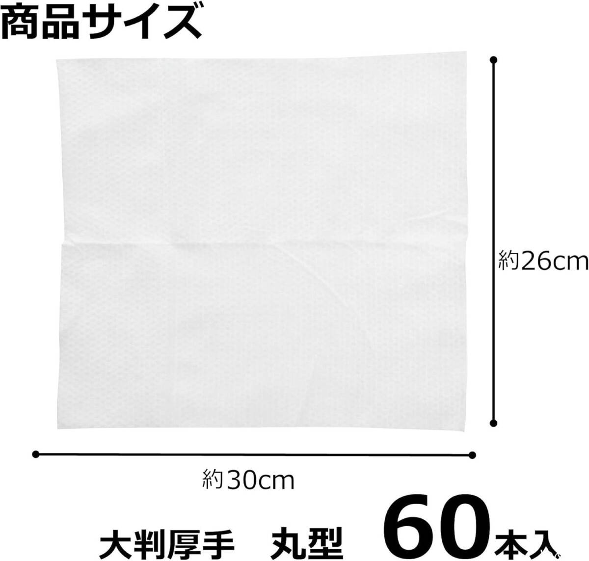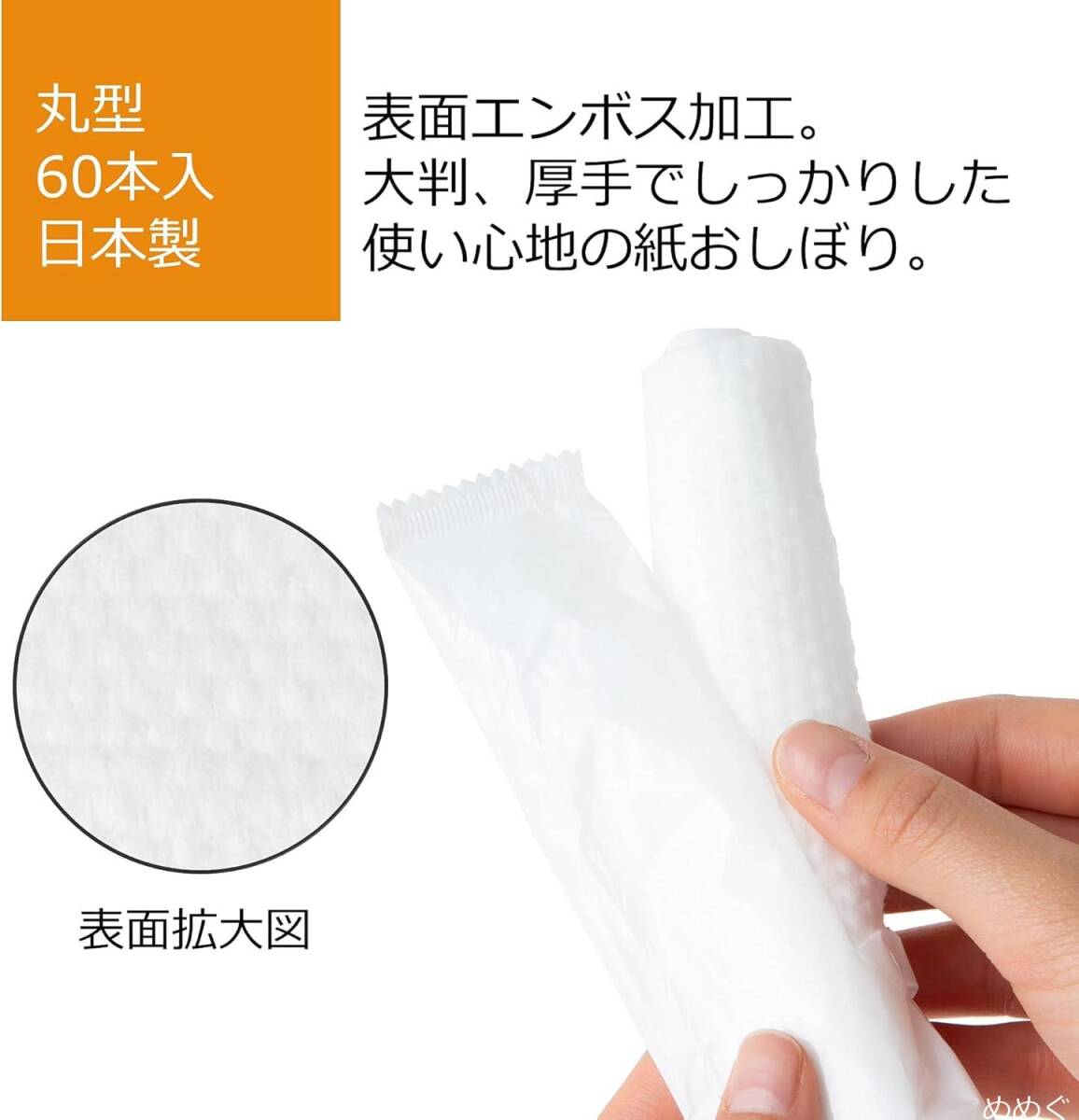 ストリックスデザイン 大判 厚手 おしぼり 使い捨て 日本製 丸型 60本 個包装 表面エンボス加工 しっかりとした使い心地 不織