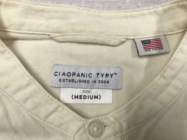 チャオパニック CIAOPANIC TYPY USA製コットン EURO古着ライク ロング丈 ヘンリーネック バンドカラー 長袖 プルオーバー シャツ メンズ M です。