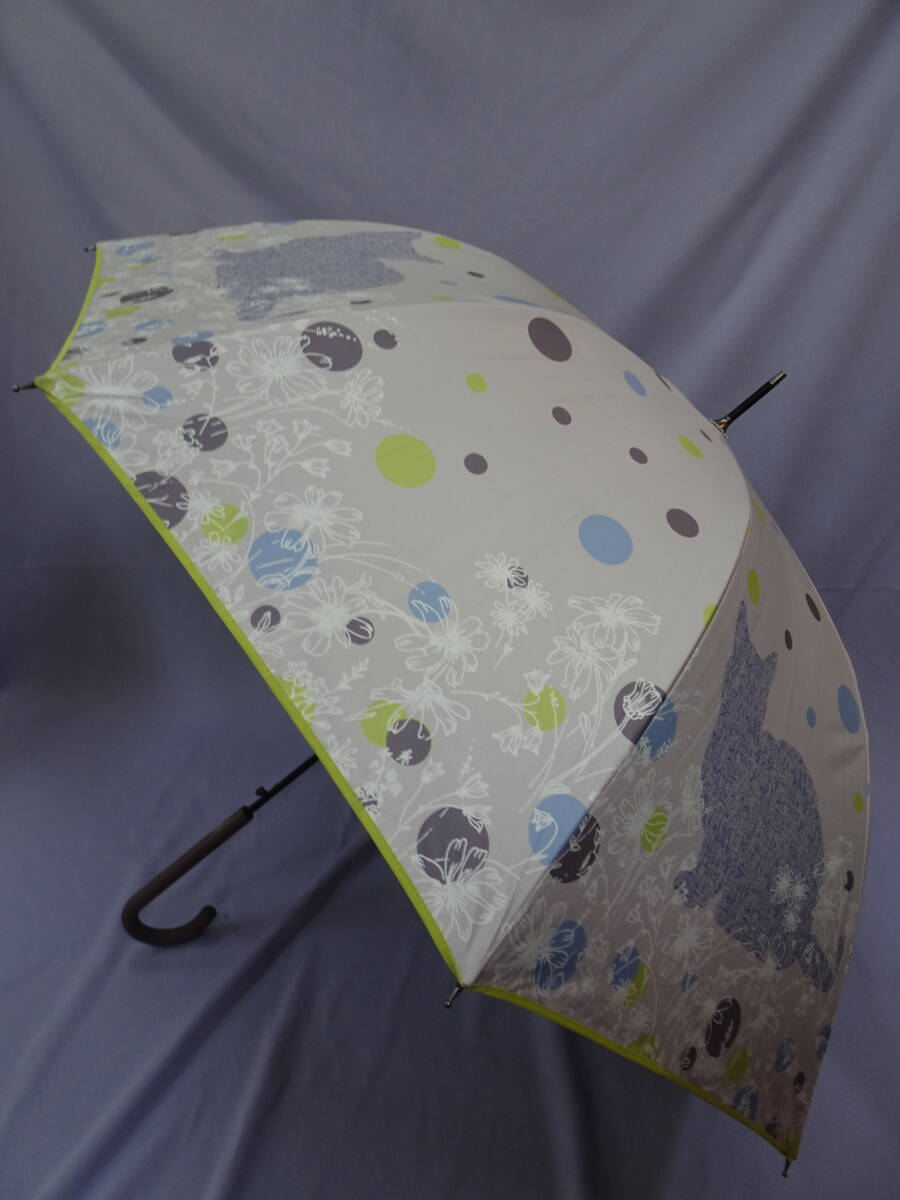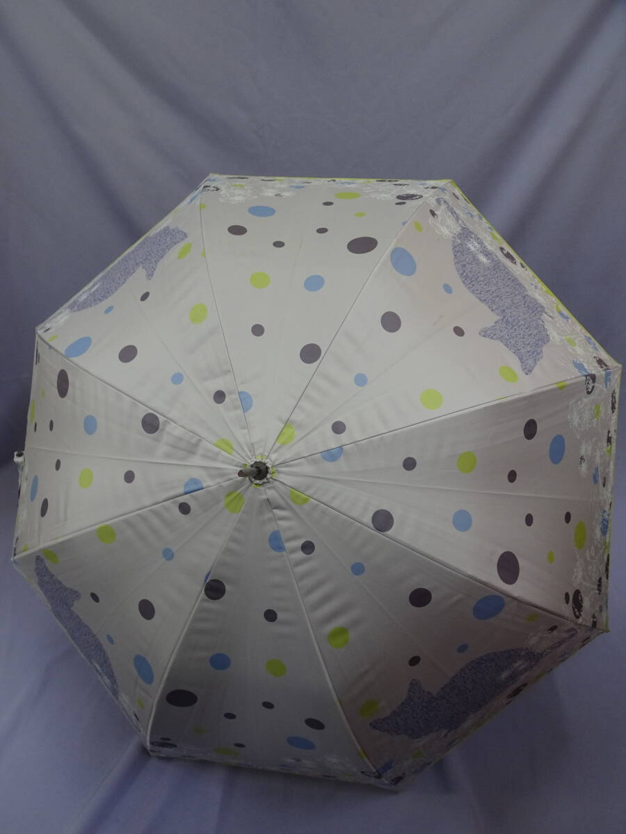 (M-1053) (株) ソレイユ 長傘 日傘 58㎝ グレー系 ネコ模様 ジャンプ式 レディース 中古