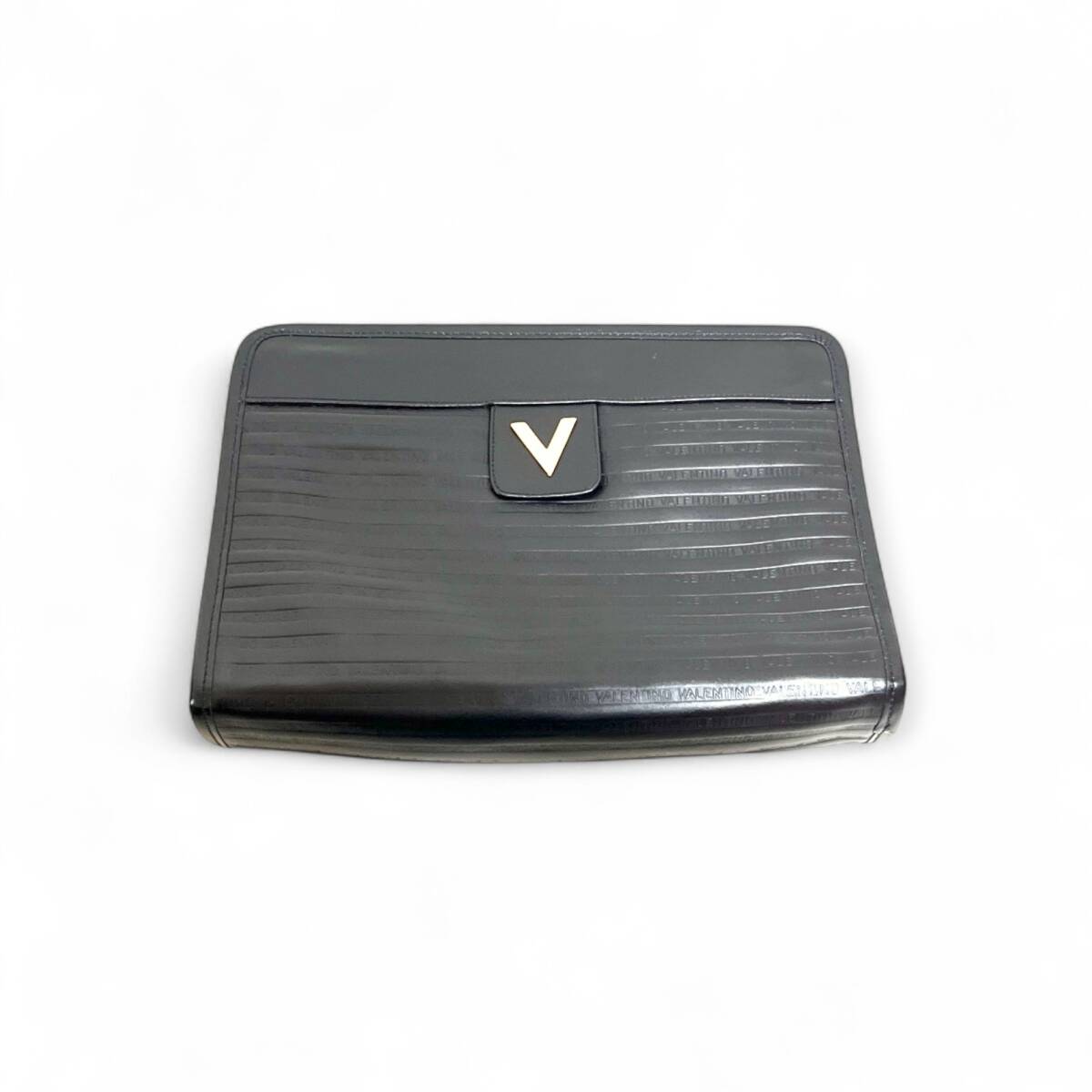 1円~ 60 A-10-53 MARIO VALENTINO ヴァレンティノ セカンドバッグ 90s クラッチバッグ ヴィンテージ ブラック レザー ロゴ