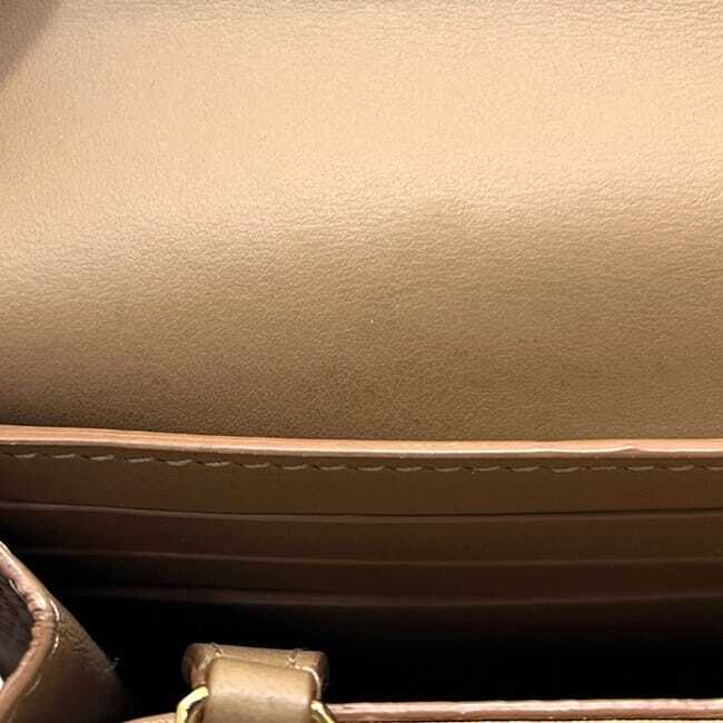 | 詳細説明 | カードポケット表面と内側マチ部分に汚れ、フラップ内側の折れ目付近と背面に薄汚れ、角に擦れ、背面ポケット上部のステッチ一か所に糸飛び有、その他使用感はなく比較的綺麗なお品物です。 |