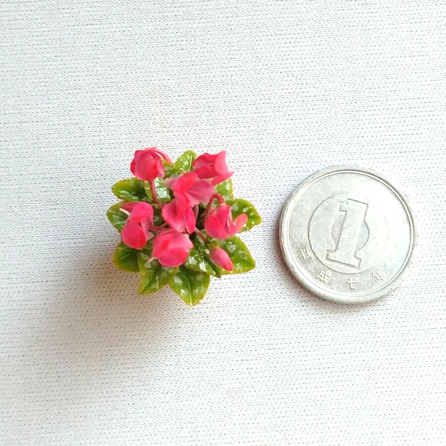 樹脂粘土でミニチュアのシクラメン作り