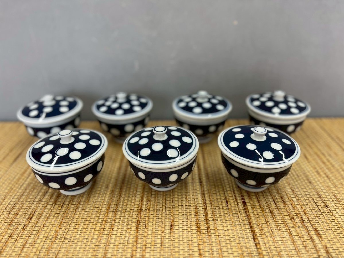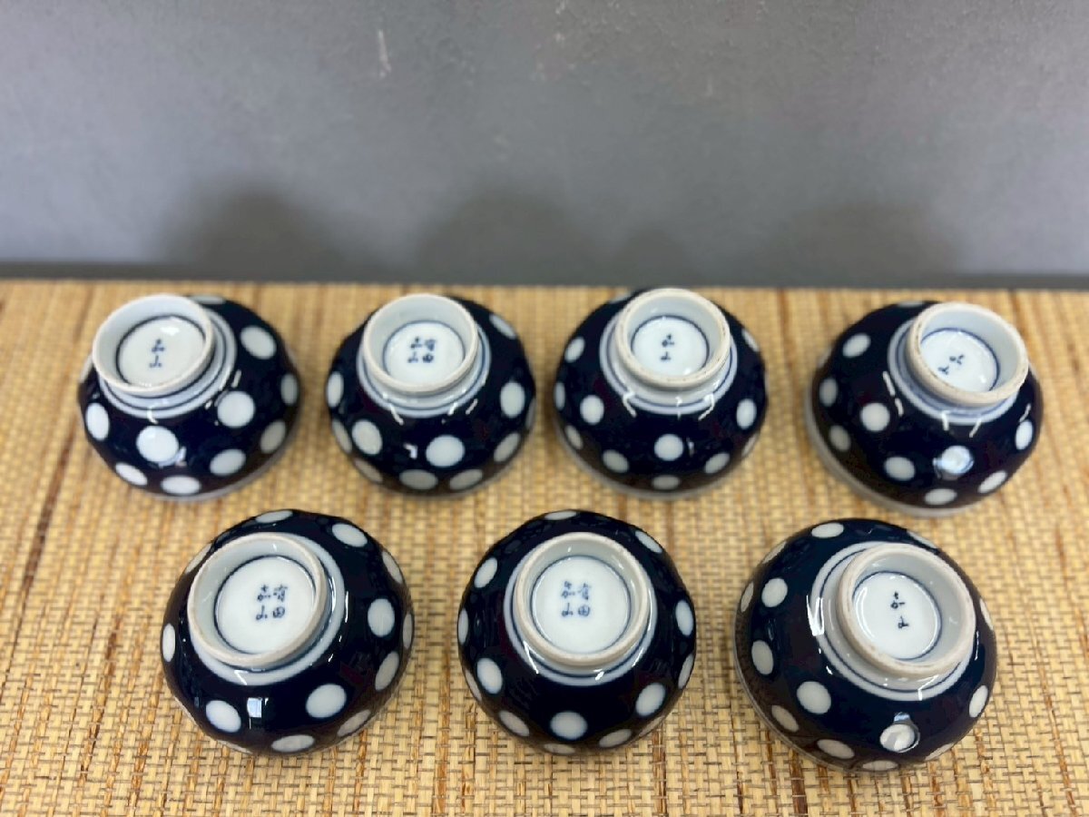 有田焼 昭和 レトロ ポップ 湯呑 蓋つき 水玉7客