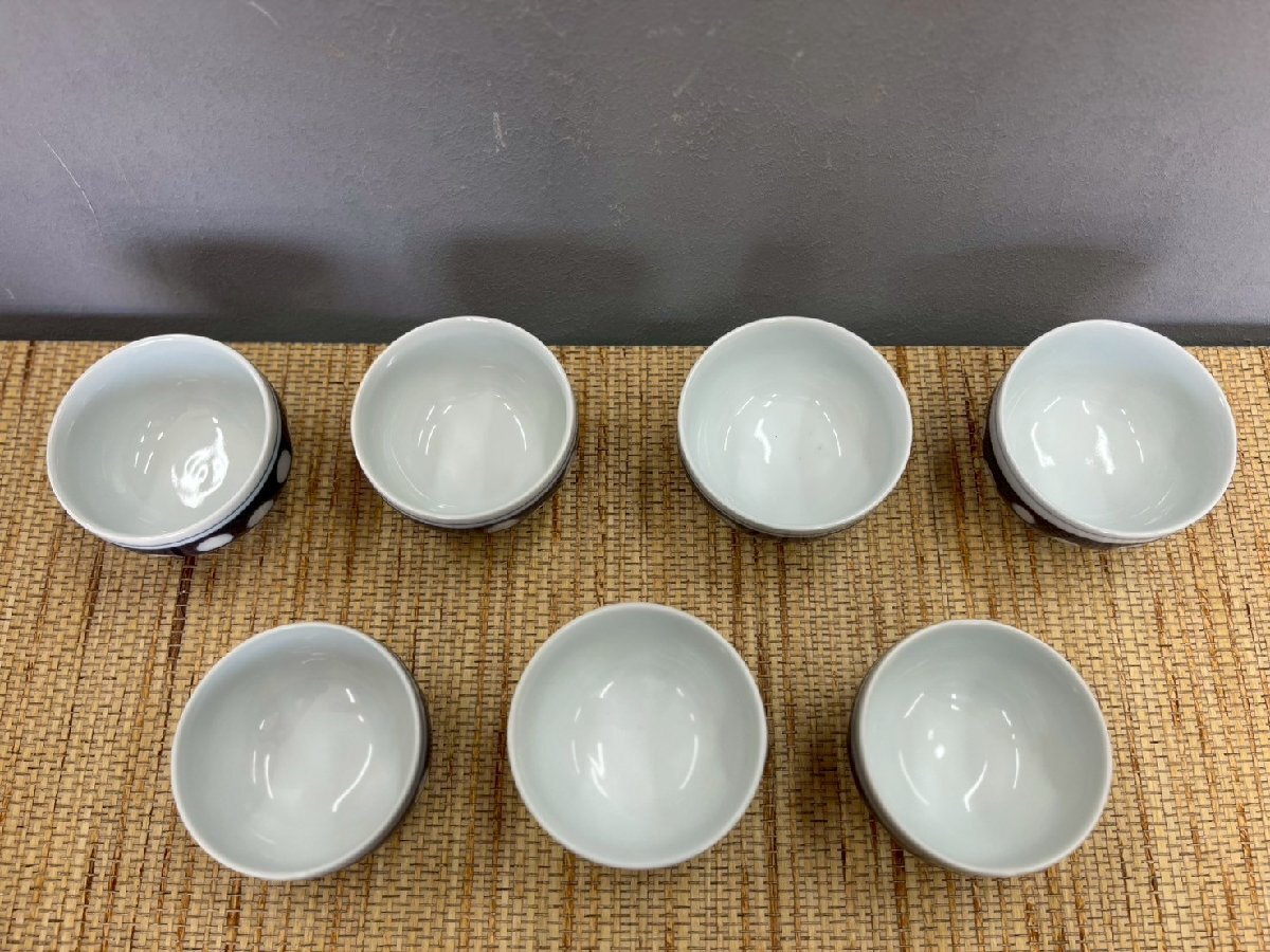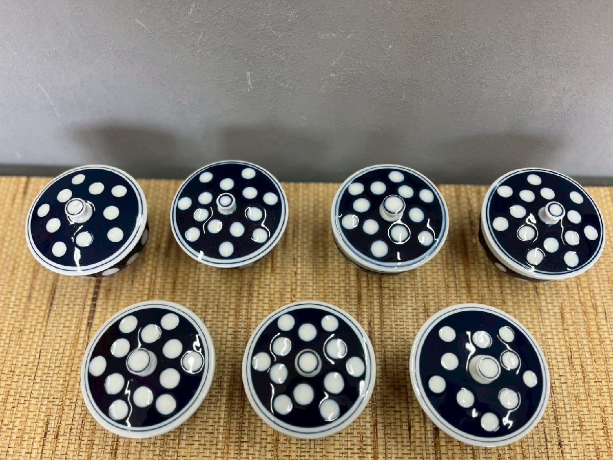 有田焼 昭和 レトロ ポップ 湯呑 蓋つき 水玉 7客