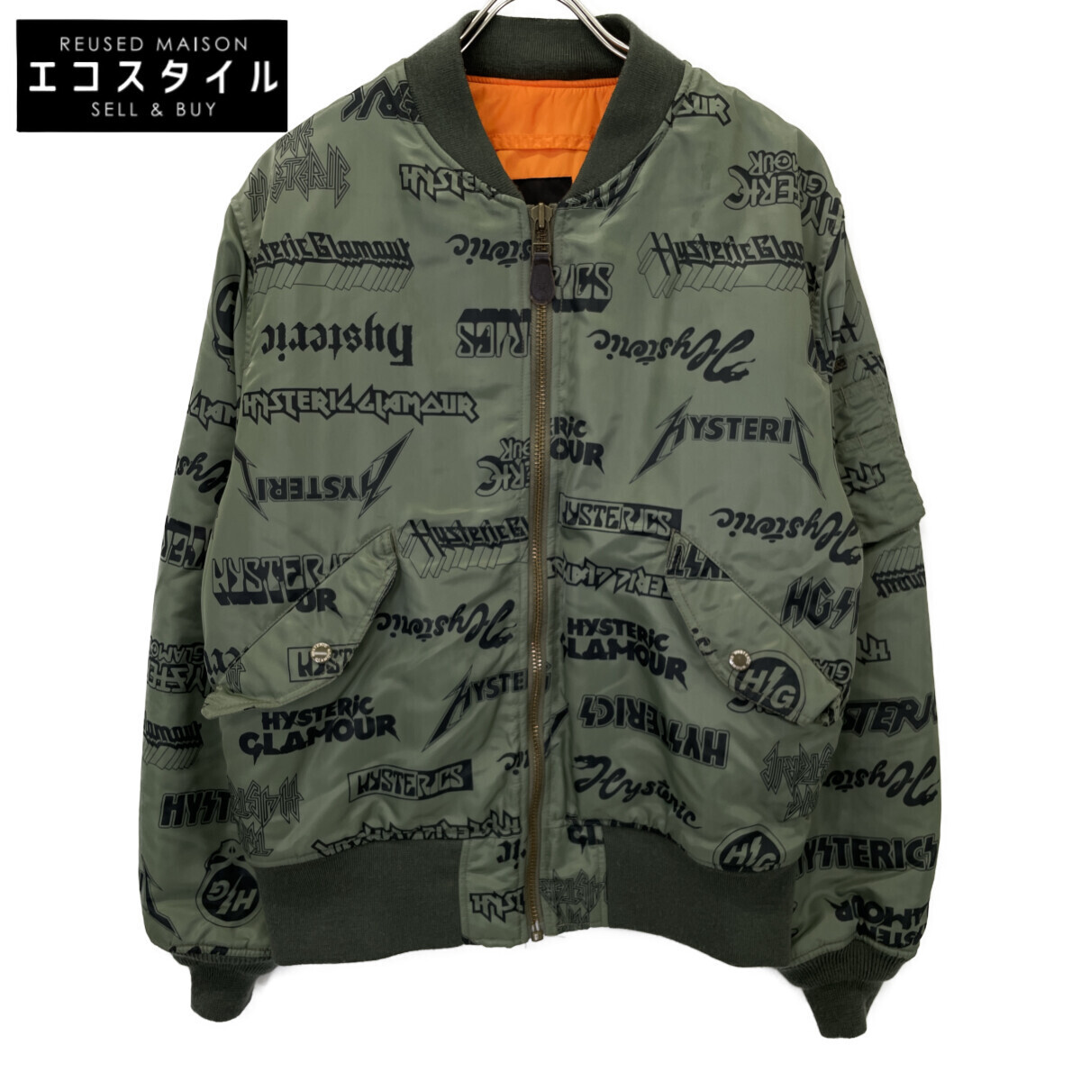 HYSTERIC GLAMOUR ヒステリックグラマー 02173AB04 ロゴプリント MA-1 フライトジャケット カーキ S ジャケット ナイロン メンズ 中古