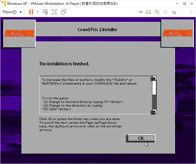 DOSゲーム グランプリ2 GRANDPRIX 2 英語版 日本語解説書付き Windows上DOSモード可 です。