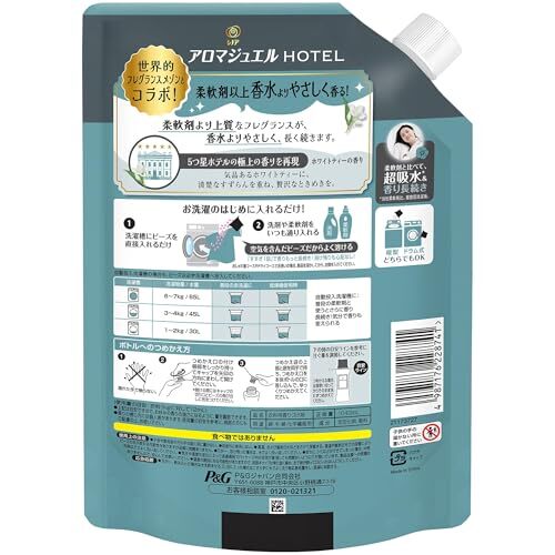 -/詰め替え 1040mL/-・PatternName:ホワイトティーSize:詰め替え 1040mL・パッケージ個数:1・5つ星ホテルのロビーの香りをお洗濯に。世界的フレグランスメゾンとコラボのレノアアロマジュエルHOTEL!・アロマジュエルなら柔軟剤に比べて超吸水*。ドライヤー時間短縮!(*当社柔軟剤比。複数回洗濯後。)・香りが12週間長続き*するので、お気に入りのヘビロテ服*1の香りが6回着ても新鮮なまま*2。(*保管状態にて。*1 1回洗濯してから次の洗濯までに3-4回着回す服のことを指します。*2 消費者テストでカーディガンを検証。使用条件により公開が異なる場合があります。)・柔軟剤と組み合わせてオリジナルの香りを作ることもでき、今お持ちの柔軟剤でも一緒にお使いいただけます。・使い方は簡単。お洗濯のはじめに、洗濯槽に入れた洋服の上に直接入れるだけ!縦型、ドラム式どちらでもお使いいただけます。