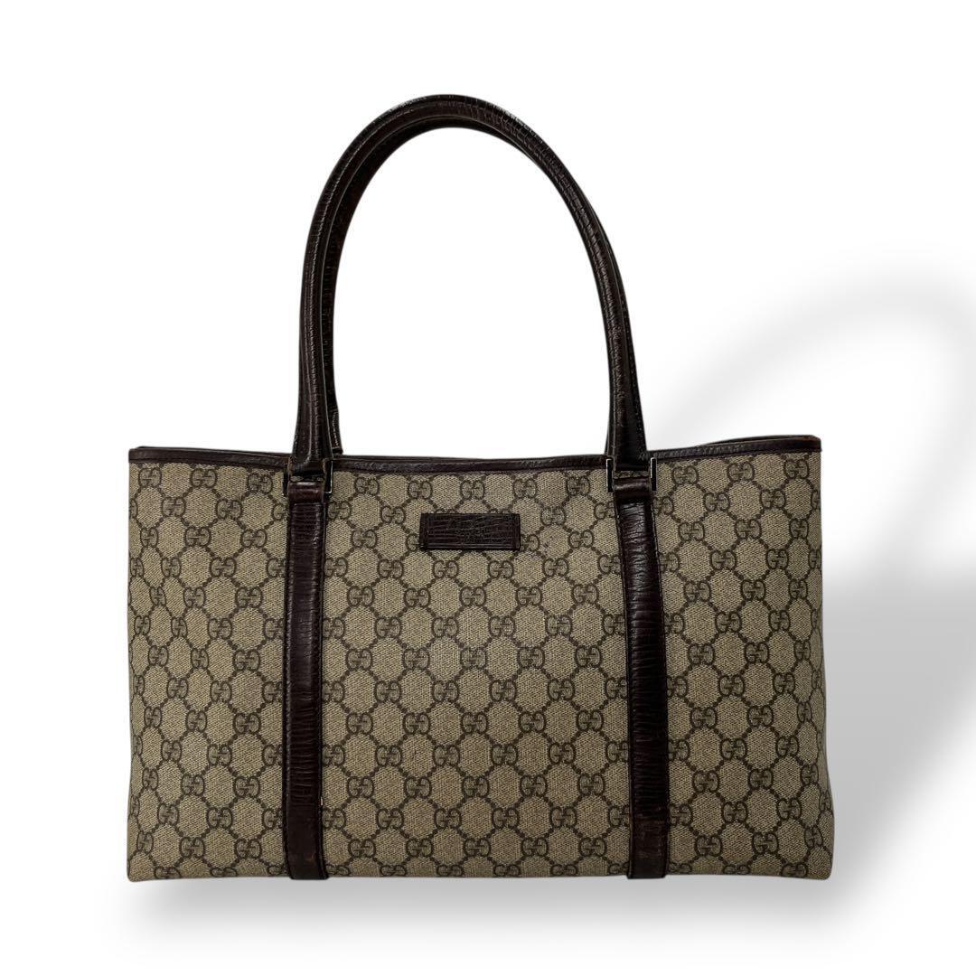 GUCCI GG柄 総柄 シルバー金具 大容量 ハンドバッグ ブラウン
