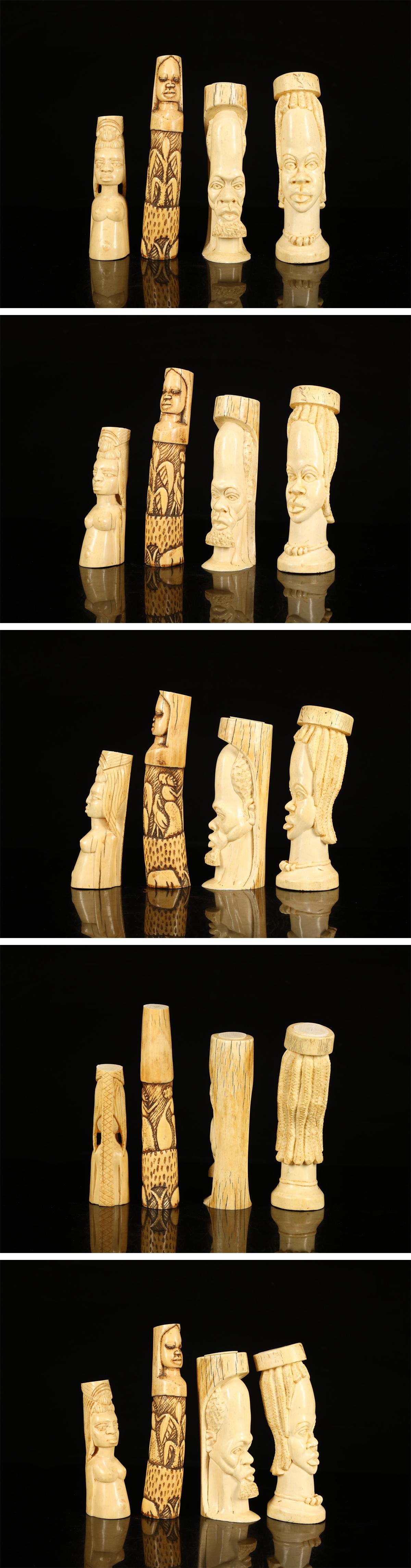久1298 時代 東洋彫刻 人物 置物 4点 重1670g