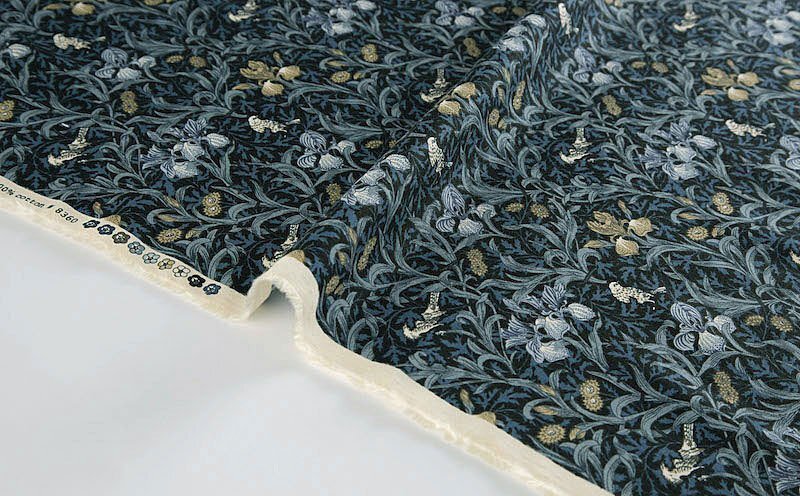 ウィリアムと娘、メアリー"メイ"モリスの共同作業による、アイリスと鳥がモチーフの柄。