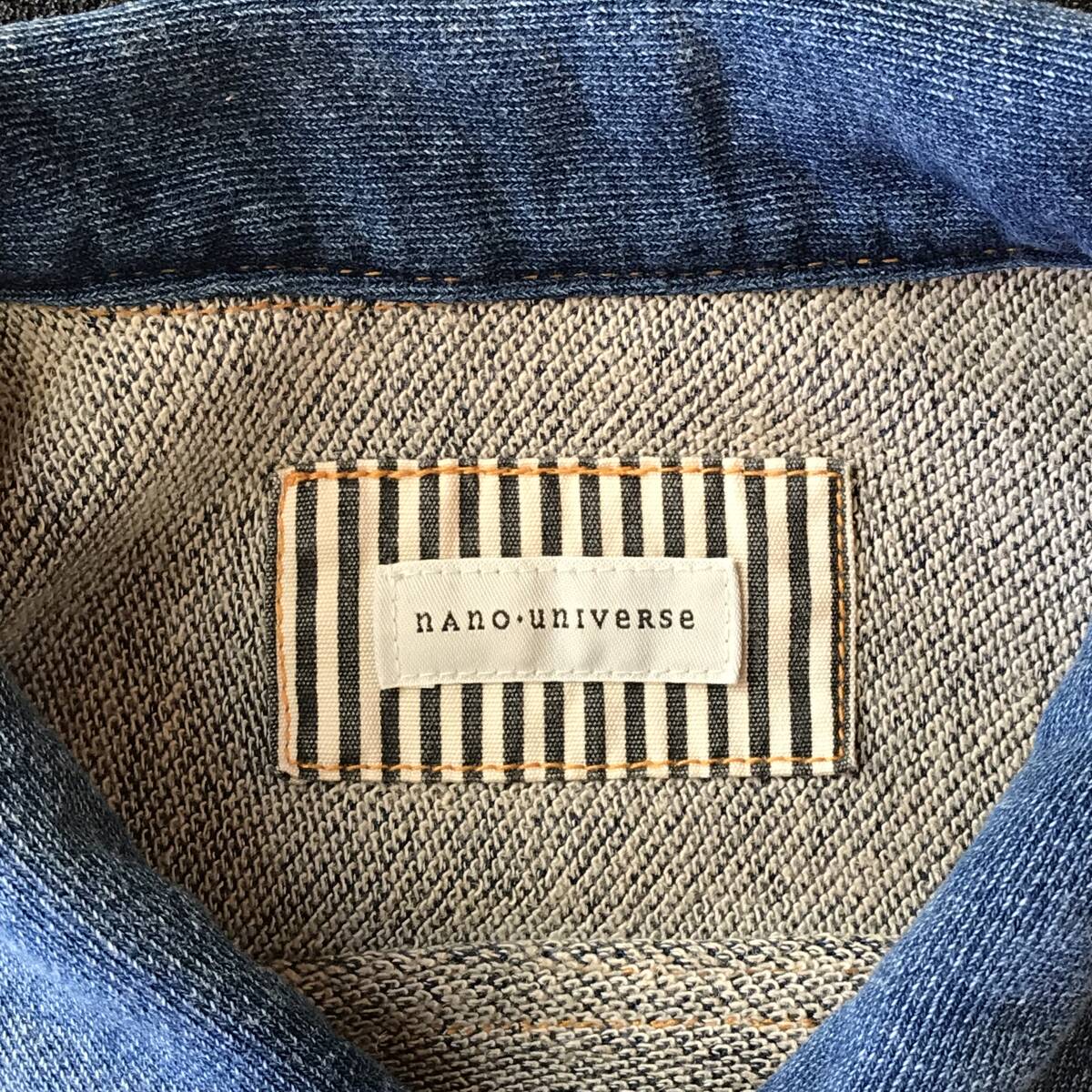 ナノユニバース スウェット 素材 Gジャン 白ボタン ブルー サイズ S 肩幅41.5㎝ 袖丈61.5㎝ デニムジャケット nano universe