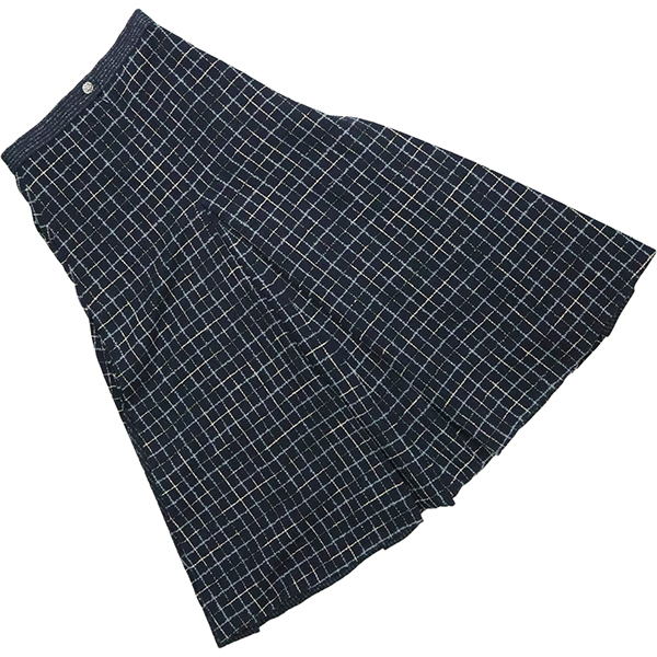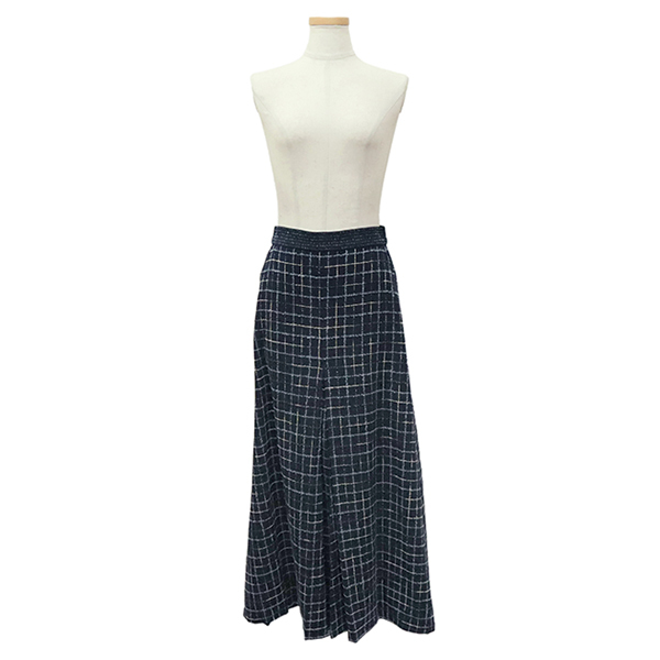 | スタッフコメント | 上質なウールを贅沢に使用したシャネルのロングスカートが入荷致しました。スリットとネイビーの生地にあしらわれたツイードが上品なスカートはビジネスやフォーマル・パーティなど、マルチにご使用頂けるシンプルかつエレガンスな逸品でございます。 |