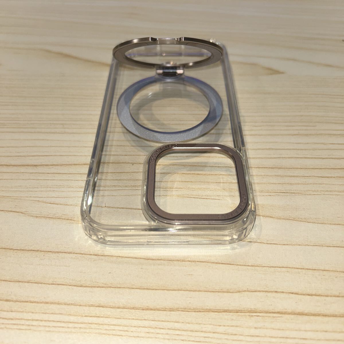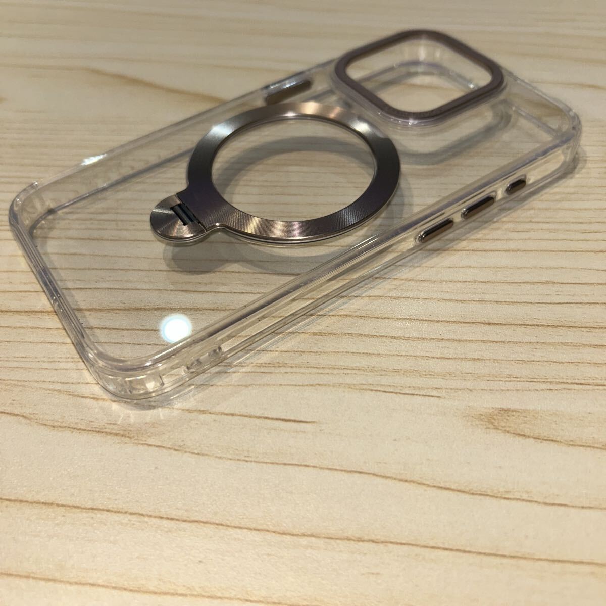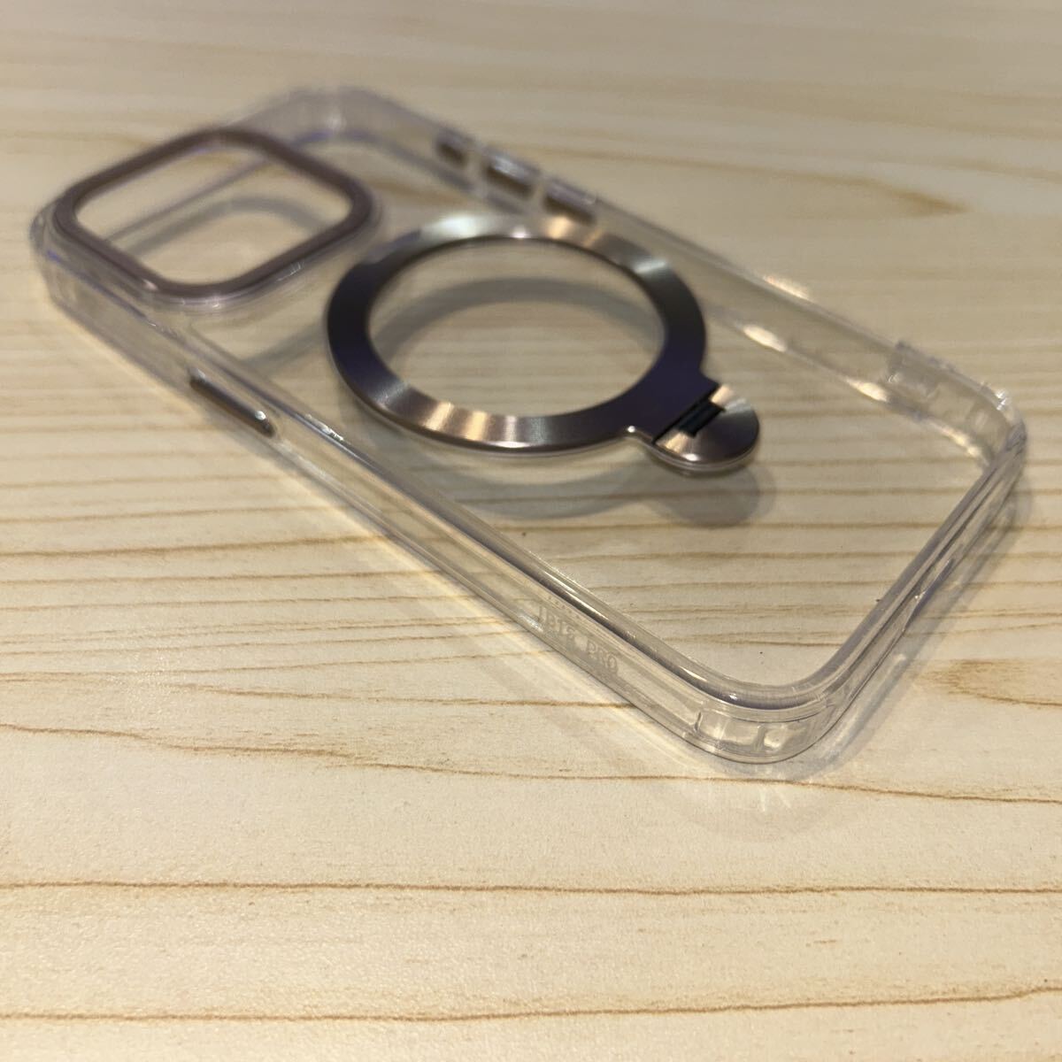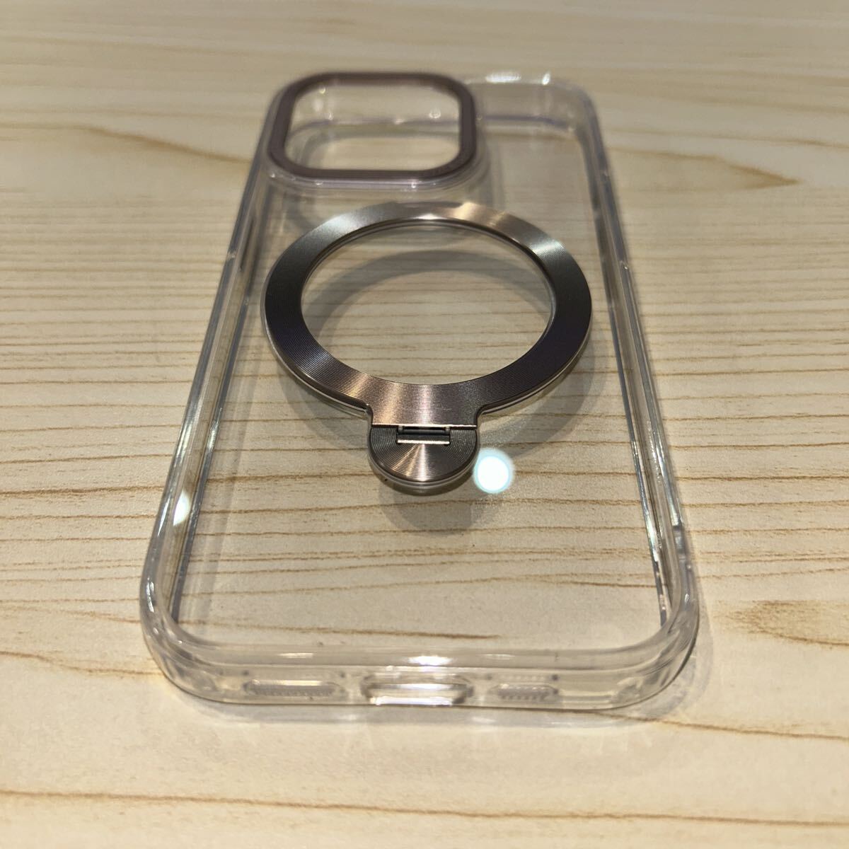 c546 【デザートチタニウム 360°回転スタンド】 iPhone 15 Pro 用 ケース Magsafe 対応 ストラップホール付き 米軍MIL規格取得(クリア)