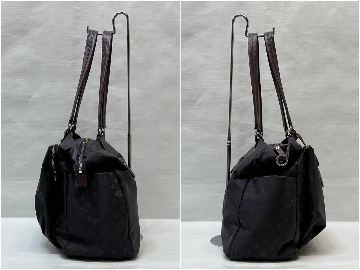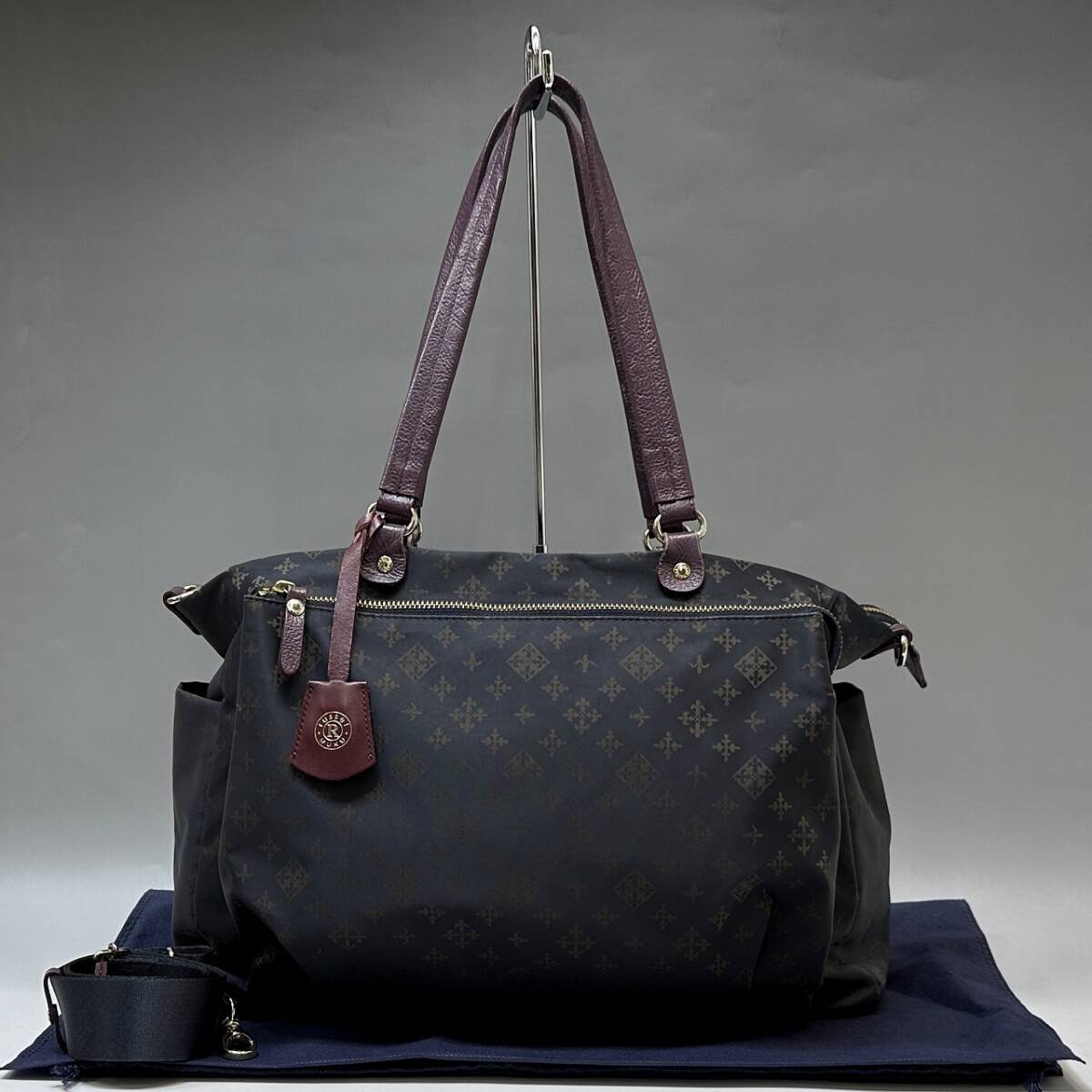 極美品 russet ラシット モノグラム ナイロン 2WAYハンドバッグ ショルダーストラップ付き ネイビー/パープル 斜め掛け可 レディース