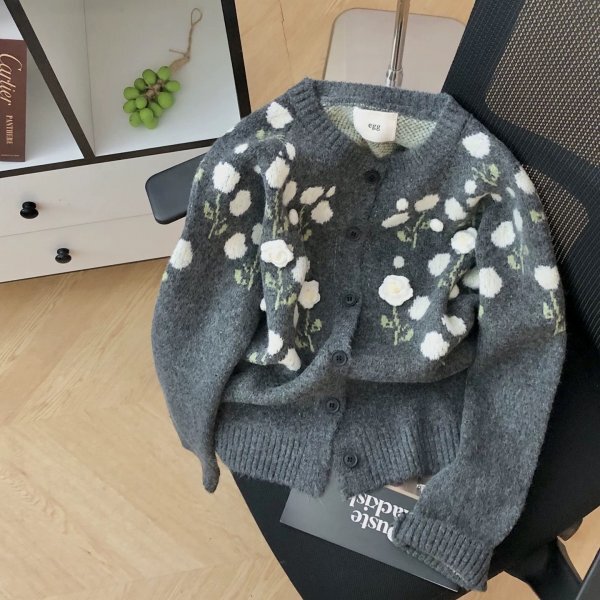mgm 2510 ニット セーター カーディガン 羽織物 アウター チュニック オシャレ フリーサイズ 大人可愛 立体花柄2