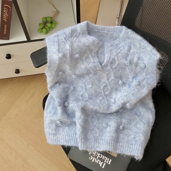 mgm 2510 ニット セーター ベスト チュニック オシャレ フリーサイズ 織り込み柄2