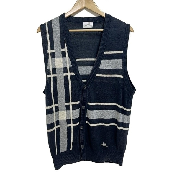 ダンヒル dunhill/ALFREDDUNHILL ベスト サイズL - ネイビー×ブルーグレー×白 メンズ Sport トップス