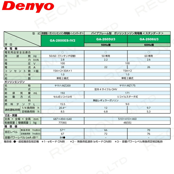 デンヨー ガソリンエンジン発電機 GA-2800ES-IV2