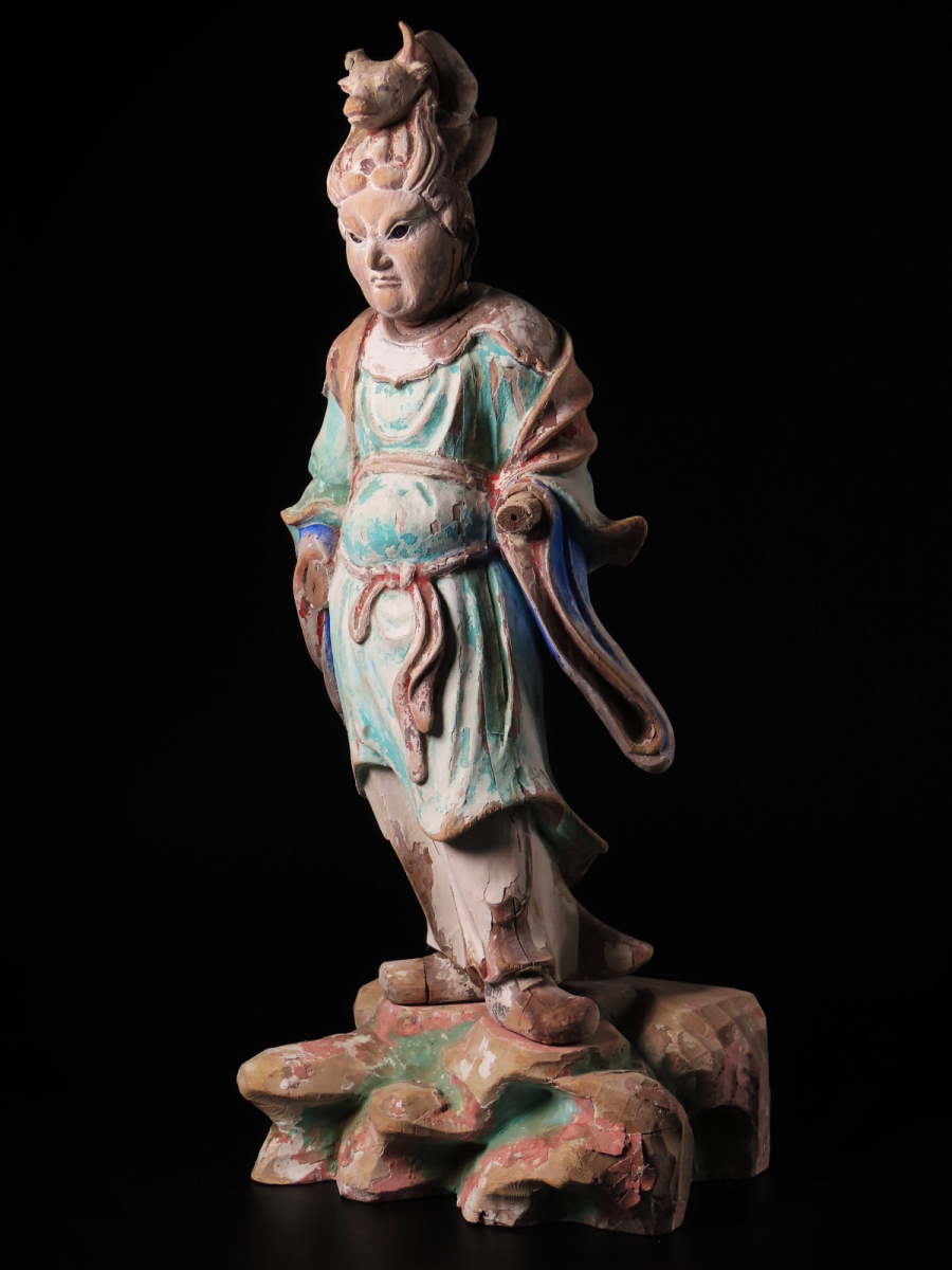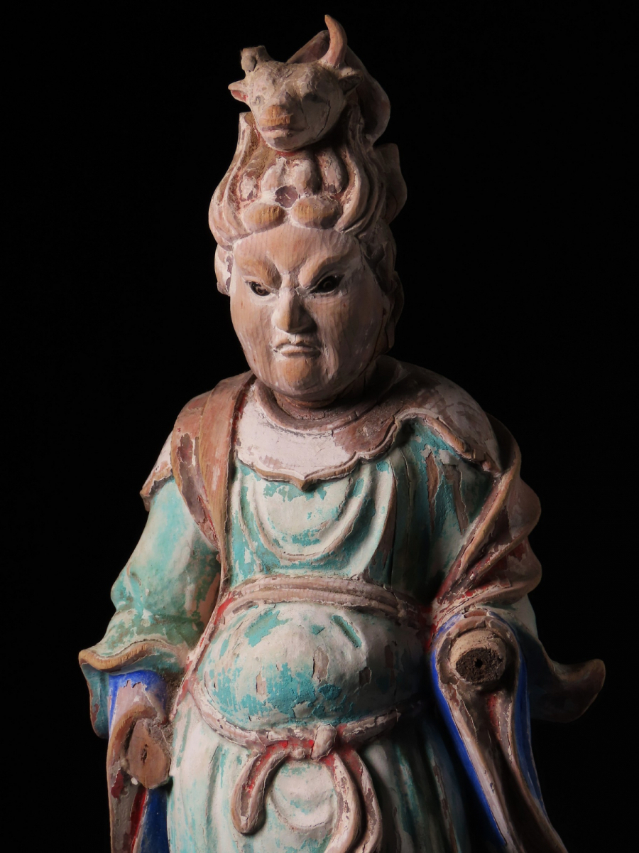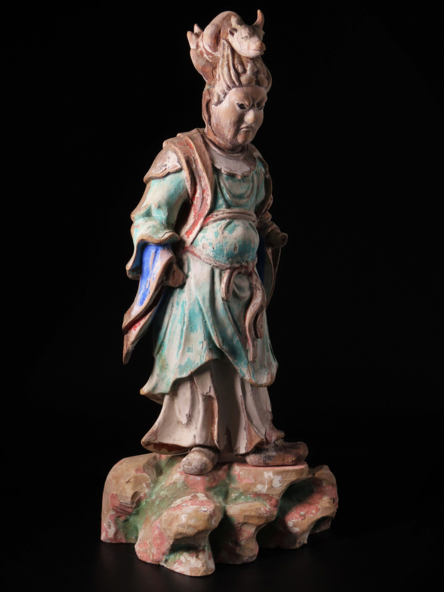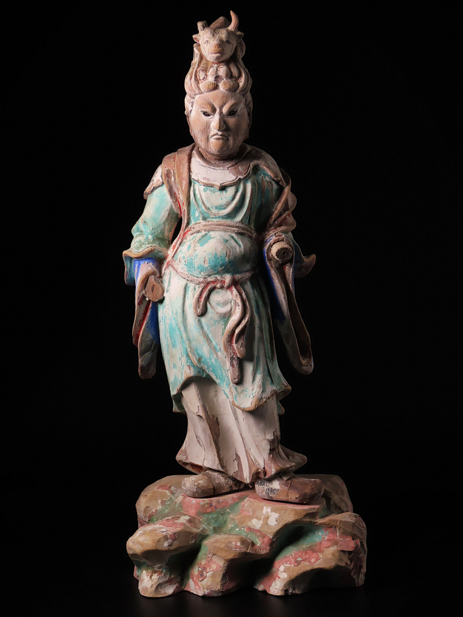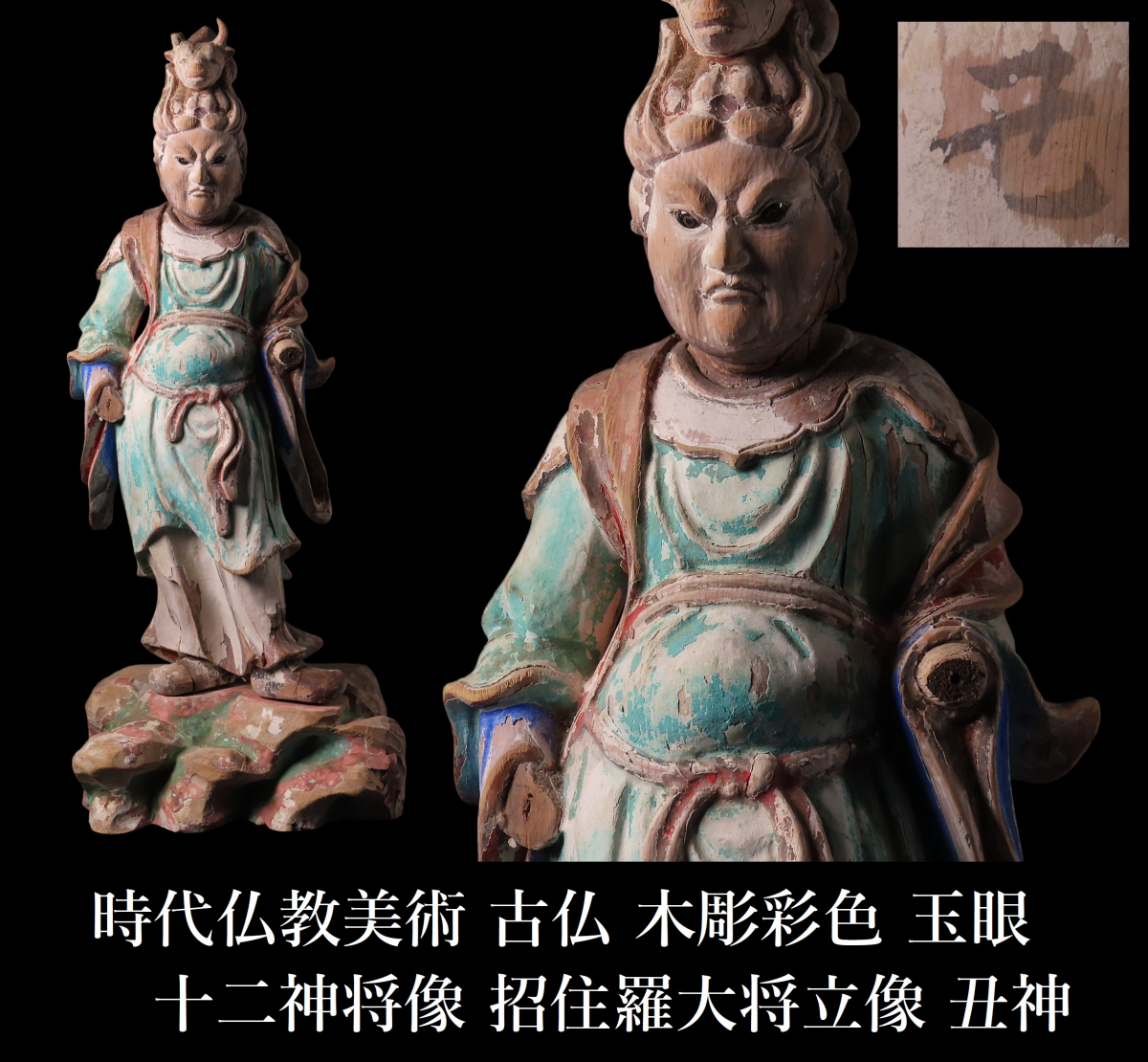 【ONE'S】時代仏教美術 古仏 木彫彩色 玉眼 十二神将像 招住羅大将立像 丑神 高43cm 仏像 置物 東洋彫刻 古美術品 | |||